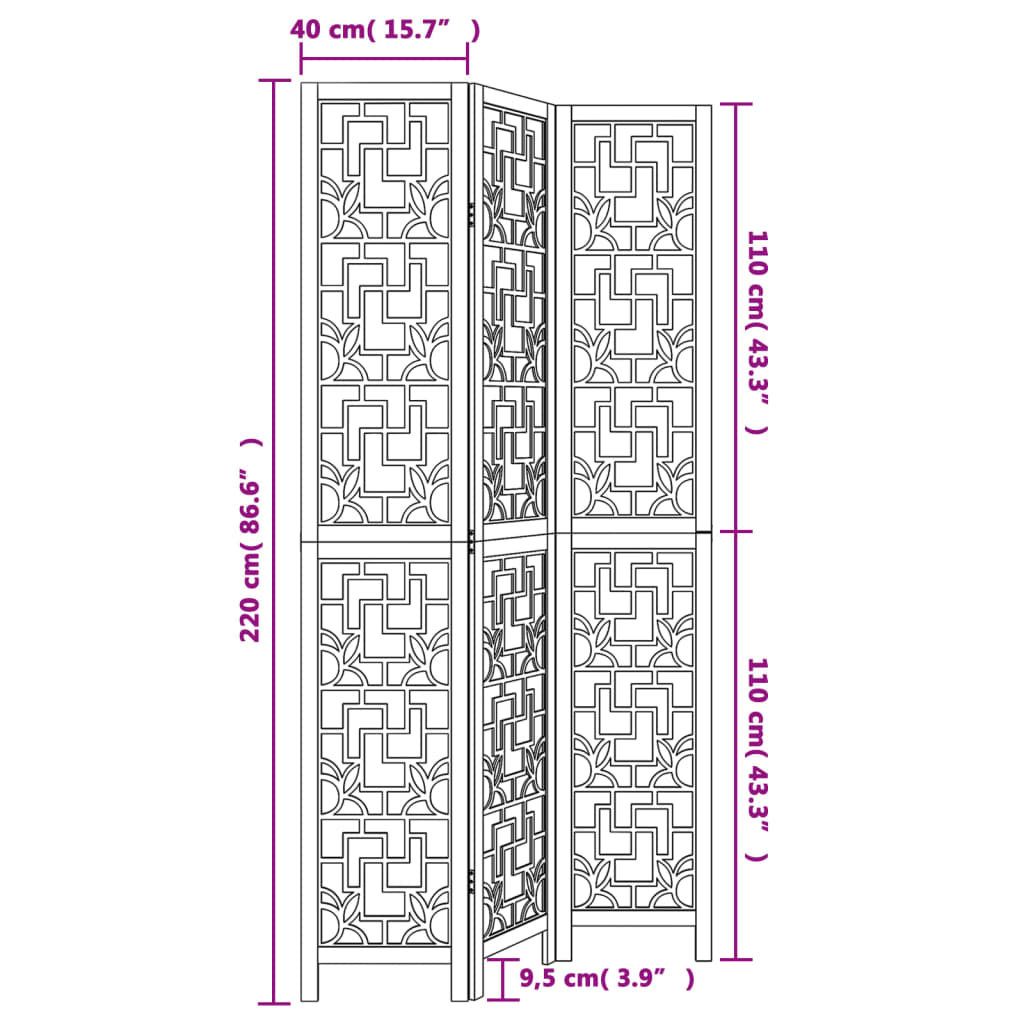 3-tlg. Raumteiler Braun Massivholz Paulownia