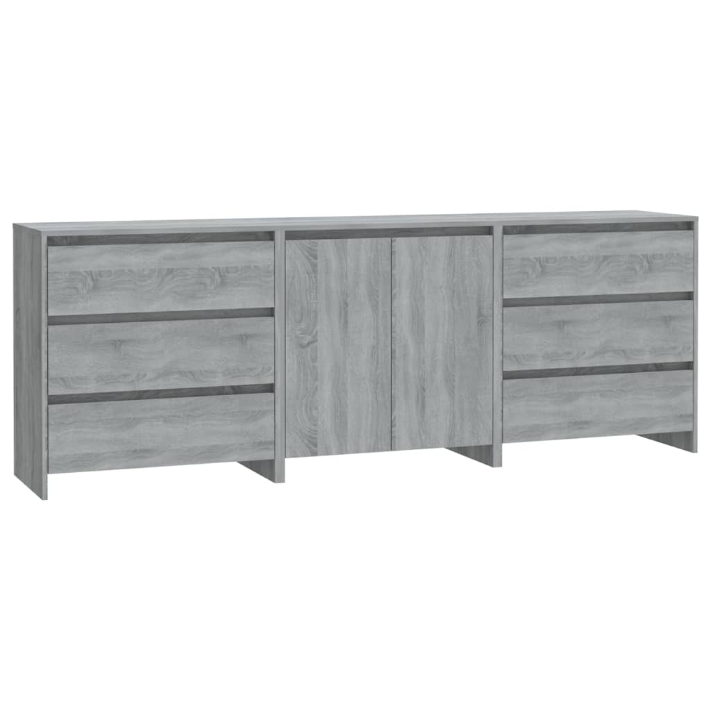 3-tlg. Sideboard Grau Sonoma Holzwerkstoff