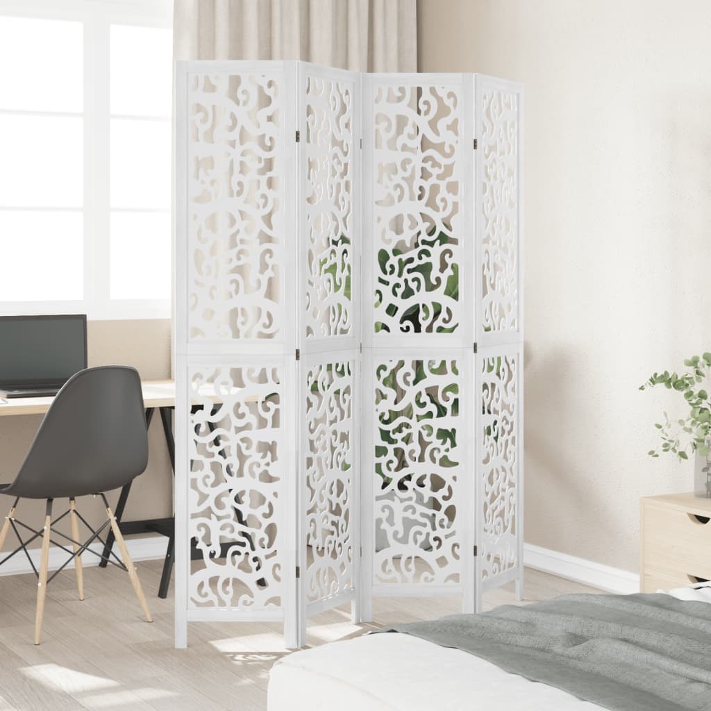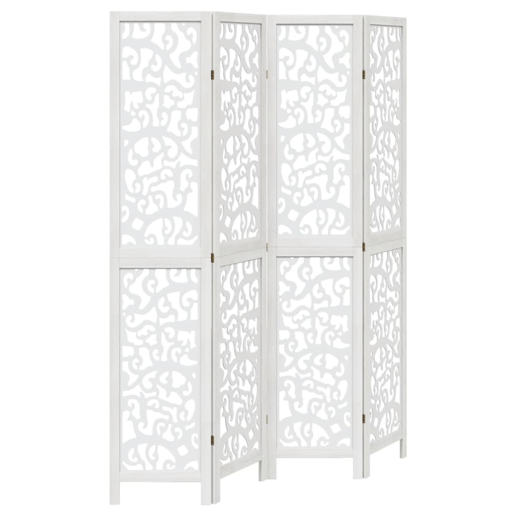 4-tlg. Raumteiler Weiß Massivholz Paulownia