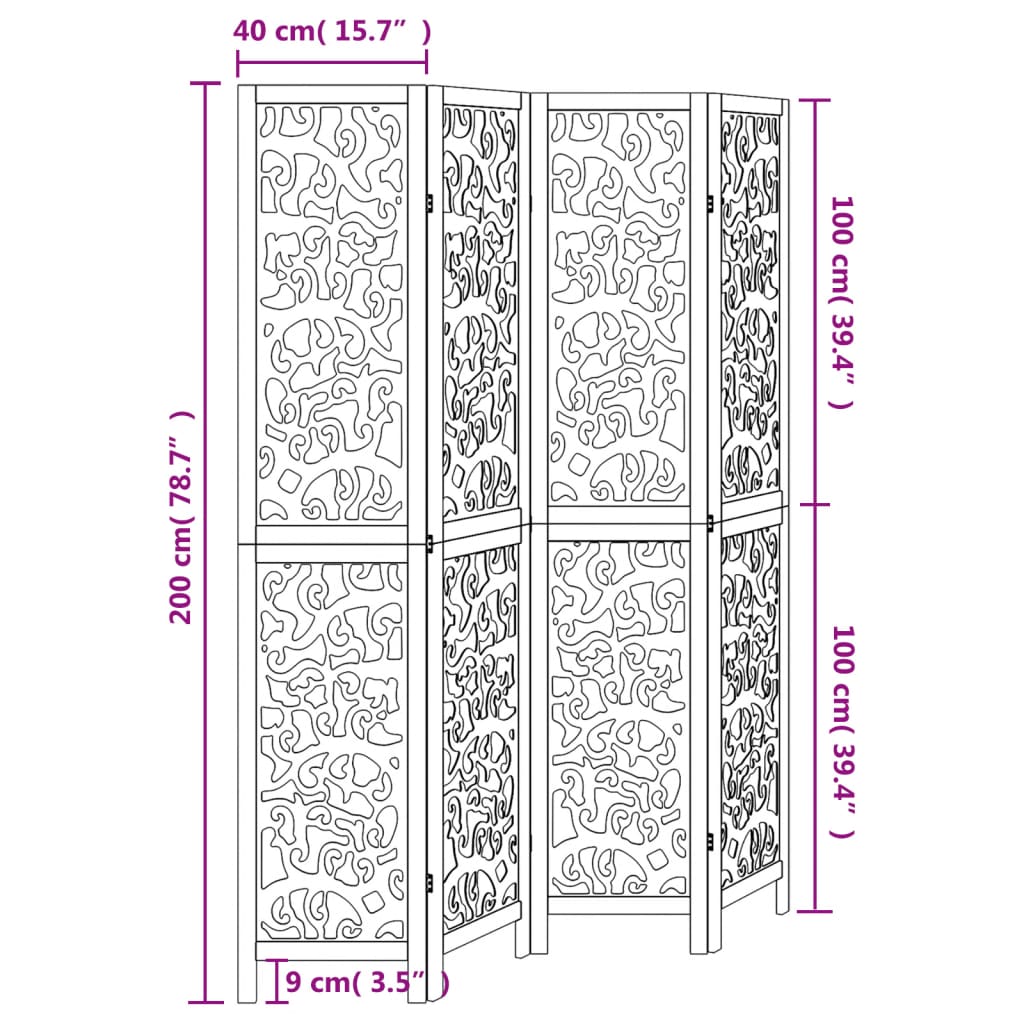 Verleihe deinem Wohnraum eine auffällige dekorative Note mit diesem bezaubernden Raumteiler. Langlebig und leicht zu reinigen: Der Sichtschutz ist aus Paulownia-Massivholz und Holzwerkstoff gefertigt, wodurch er pflegeleicht und strapazierfähig ist.Robuster Rahmen: Der Rahmen aus massivem Paulownia-Holz sorgt für Robustheit und Stabilität. Paulownia-Massivholz ist ein wunderschönes Naturmaterial. Paulowniaholz ist widerstandsfähig gegen Schädlingsbefall und Verrottung.Flexibel und einfach faltbar: Die Paravent-Teile sind jeweils durch 3 Metallscharniere miteinander verbunden. Die oberen und unteren Paneele dieser spanischen Wand sind durch verborgene 2-in-1-Scharniere verbunden. Der Raumtrenner kann also leicht bis zu einem gewissen Grad zusammengeklappt werden; dadurch spart er bei Nichtgebrauch Platz.Vielseitig einsetzbar: Die Trennwand eignet sich hervorragend zur Schaffung von Privatsphäre im Schlafzimmer, Wohnzimmer, Büro und anderen Räumen. Du kannst das Paravent auch vor ein Fenster stellen, um intensives Sonnenlicht abzuschirmen.Attraktiver Look: Mit seinem filigranen Muster verleiht diese faltbare Trennwand jedem Raum mehr Charakter. Achtung:Nur für den Innenbereich!