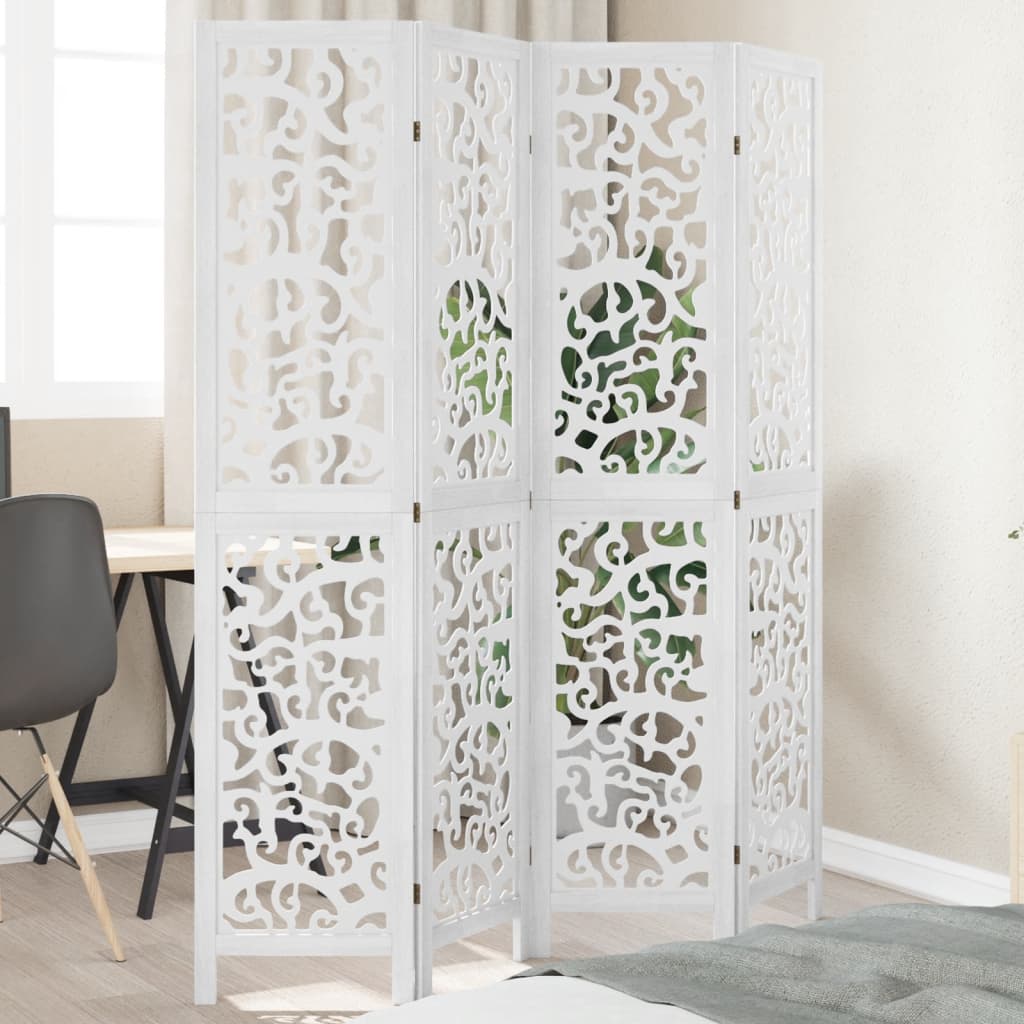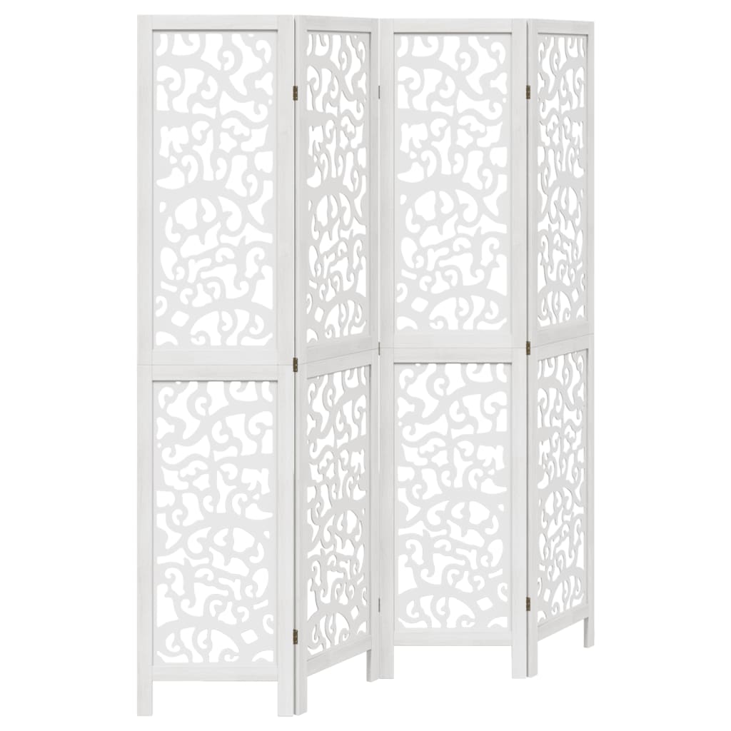 4-tlg. Raumteiler Weiß Massivholz Paulownia