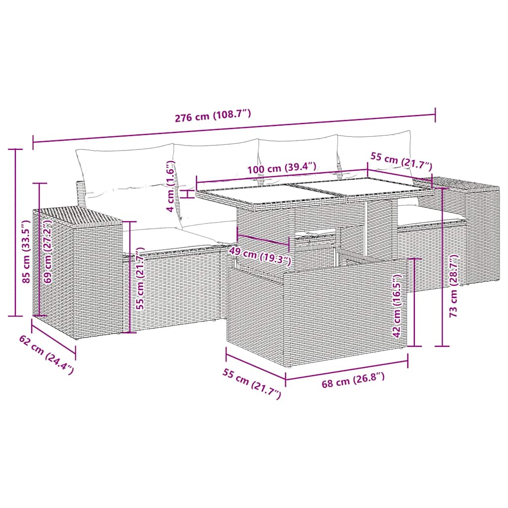 Diese Garten-Sofagarnitur ist die perfekte Ergänzung zu deinem Garten, deiner Terrasse oder deinem Innenhof. Sie bietet einen bequemen und einladenden Platz, um mit Familie und Freunden zu plaudern oder dich einfach nur zu entspannen und das Leben im Freien zu genießen.Langlebiges Material: PE-Rattan, auch als Poly Rattan bekannt, ist ein robustes, pflegeleichtes synthetisches Material, das die Optik von natürlichem Rattan aufweist. Es kennzeichnet sich durch ein geringes Eigengewicht und lässt sich einfach reinigen. Aufgrund seiner Haltbarkeit und Witterungsbeständigkeit wird es häufig bei der Herstellung von Gartenmöbeln verwendet.Stauraum mit wasserfestem Beutel: Jedes Gartensofa verfügt über ein Staufach unter der Sitzfläche, das mit einem wasserfesten Beutel zur Aufbewahrung von Kissen, Spielzeug und anderen Gegenständen versehen ist. Die Kissen sind mit Bezügen versehen und lassen sich mit Klettverschlüssen fest und sicher an den Sofas befestigen.Abnehmbarer und waschbarer Bezug: Diese Sitzkissen verfügen über abnehmbare Bezüge für einfaches Waschen und Pflegen.Modulares Design: Dank des modularen Designs lassen sich die Gartenmöbel völlig flexibel und einfach umstellen, um deinen Außenbereich ganz individuell zu gestalten.Gut zu wissen:Wir empfehlen dir, deine Gartenmöbel mit einer wasserdichten Hülle zu schützen, um lange Zeit eine ansprechende Optik aufzuweisen.
