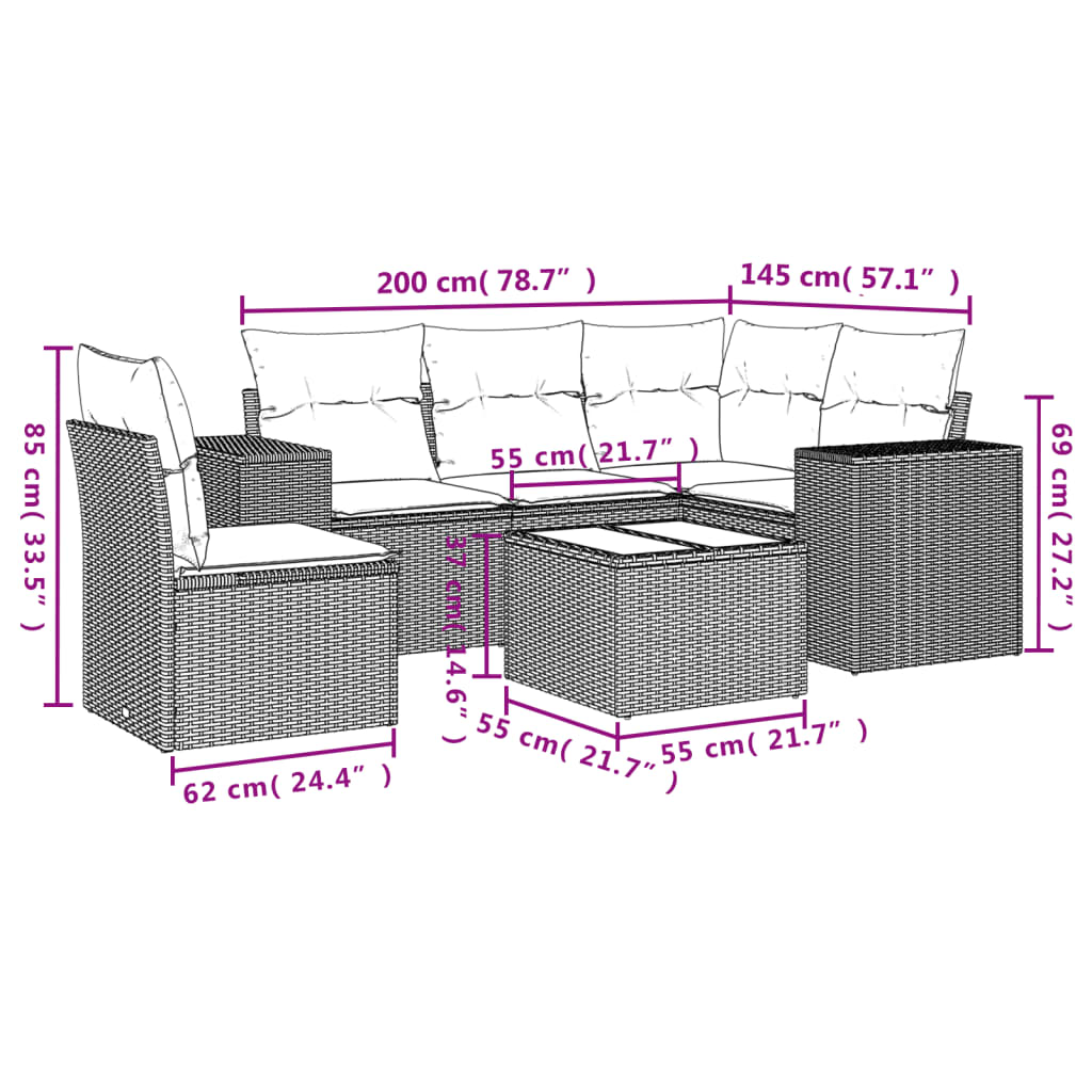6-tlg. Garten-Sofagarnitur mit Kissen Beige Poly Rattan