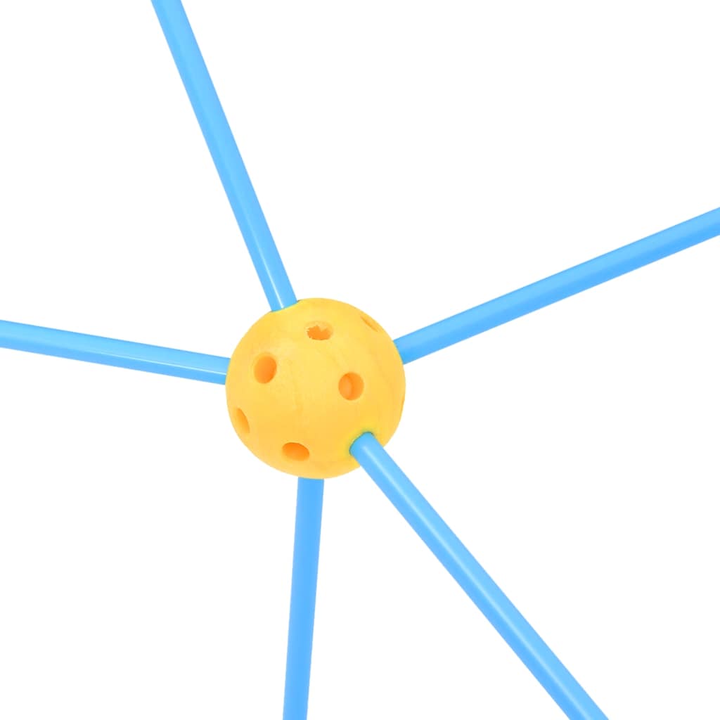 Mit diesem Festungsbausatz können Ihre Kinder Spaß haben und gleichzeitig Kreativität und Fantasie anregen. Es wird mit 45 ABS-Stangen und 27 PE-Bällen geliefert. Mit diesem magischen Bauspielzeugset kann Ihr Kind Festungen in allen Formen und Größen bauen! Es ist für Kinder ab 3 Jahren geeignet. Sie können eine Höhle, ein Spielzelt, eine Rakete, ein Haus, ein Prinzessinnenschloss, einen Tunnel, Spielzeugzelte und vieles mehr bauen. Stecken Sie einfach die Stangen in die Kugeln und drehen Sie sie. Der Baumeister kann sie in wenigen Sekunden zusammenbauen und leicht wieder auseinandernehmen.