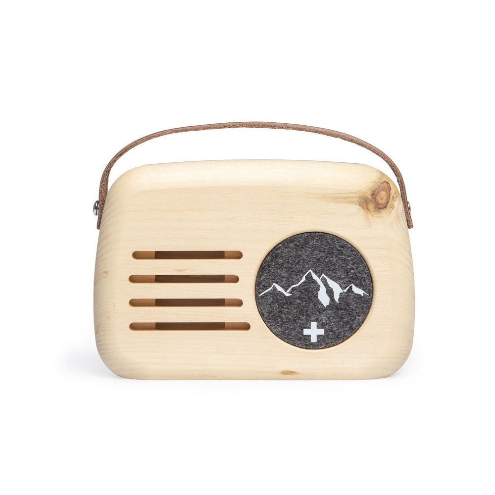 Bei unseren Produkten setzten wir auf Schweizer Qualität. Wir vertrauen auf nachhaltige Materialien aus der Region. Alpklang «Senn» wird aus Schweizer Arvenholz, rein vegetabilem Rindleder und pflanzlichem Filz hergestellt.