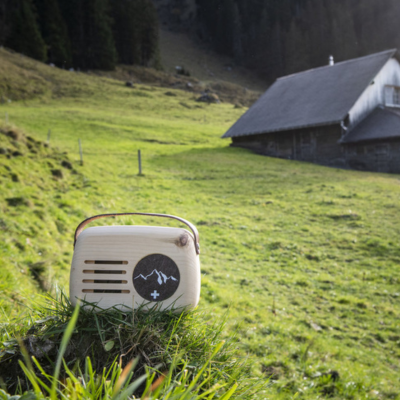 Nimmt der «Senn» dich in seiner Nähe wahr, ertönen nostalgische Kuhglockengeräusche und Alphornklänge im Wechselspiel mit Innerschweizer-, Berner- und Ostschweizer Naturjutzen.