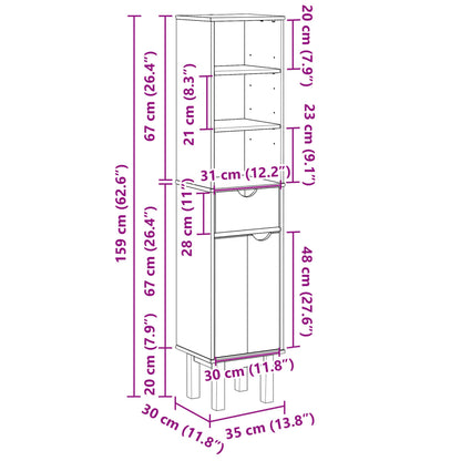 Badschrank OTTA 35x30x159 cm Massivholz Kiefer