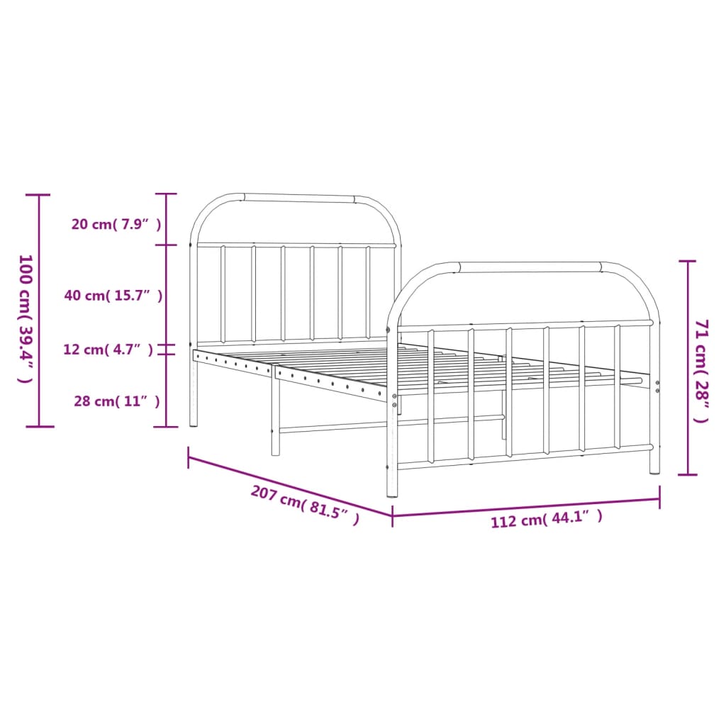 Bettgestell mit Kopf- und Fußteil Metall Schwarz 107x203 cm
