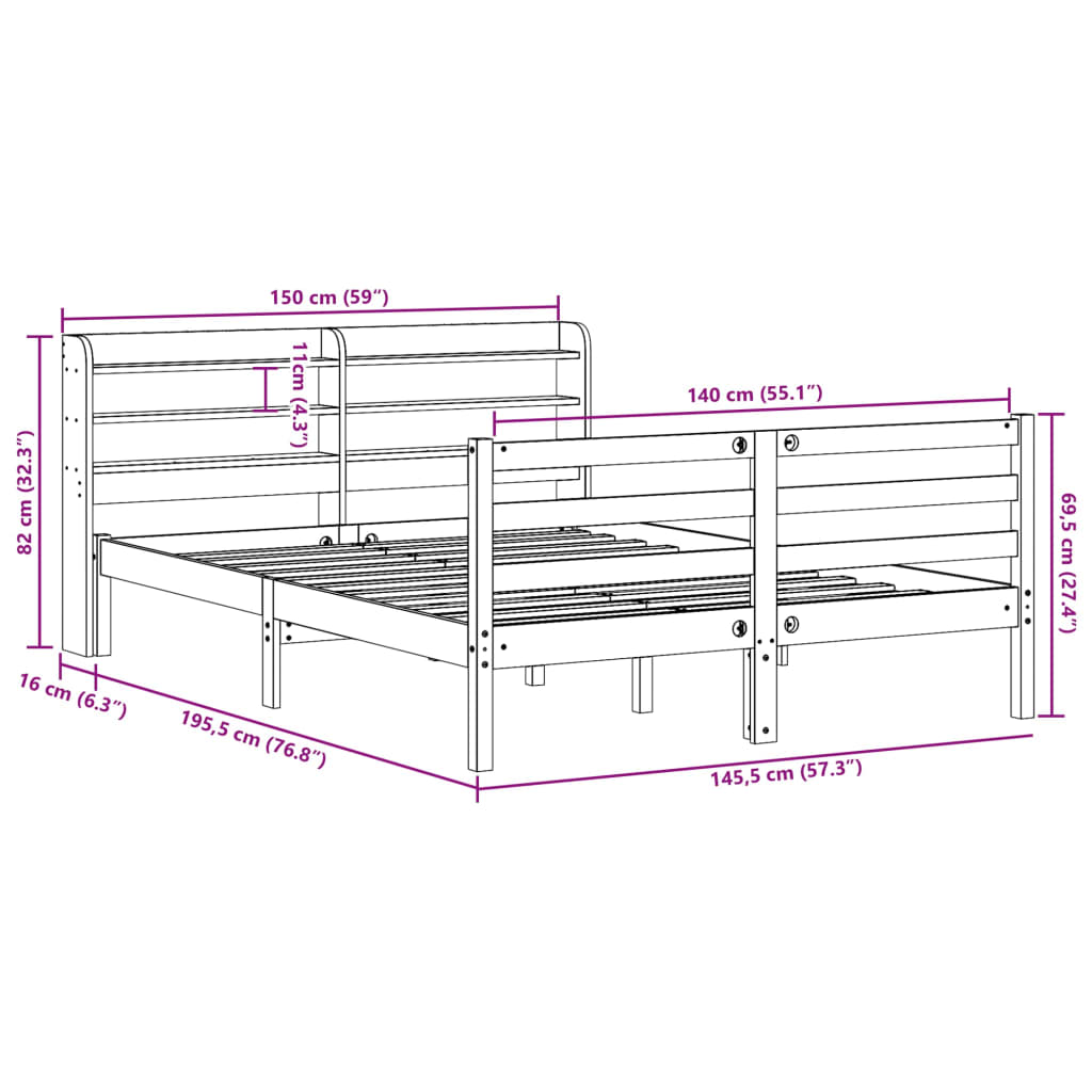 Genießen Sie einen erholsamen Schlaf in diesem Holzbett! Es wird eine praktische und dekorative Ergänzung zu Ihrem Interieur sein. Massives Kiefernholz: Massives Kiefernholz ist ein wunderschönes Naturmaterial. Kiefernholz weist eine gerade Maserung auf und die Aststellen verleihen dem Material seine charakteristische, rustikale Optik.Praktische Latten: Die Latten sorgen für eine gute Gewichtsverteilung sowie eine gute Unterstützung der Matratze, während ihre Atmungsaktivität nicht beeinträchtigt wird.Reichlich Stauraum: Das elegante Kopfteil des Bettes verfügt über zwei praktische Ablagen, die reichlich Stauraum bieten, um wichtige Sachen nachts griffbereit zu halten.Freistehend: Das freistehende Kopfteil lässt sich mühelos anbringen und bei Bedarf umstellen, ohne eine Befestigung an der Wand zu erfordern. Gut zu wissen: Bei diesem Bett ist keine Matratze im Lieferumfang enthalten. Wir bieten jedoch eine große Auswahl an Matratzen an. Du kannst in unserem Shop nach einer passenden Matratze suchen.