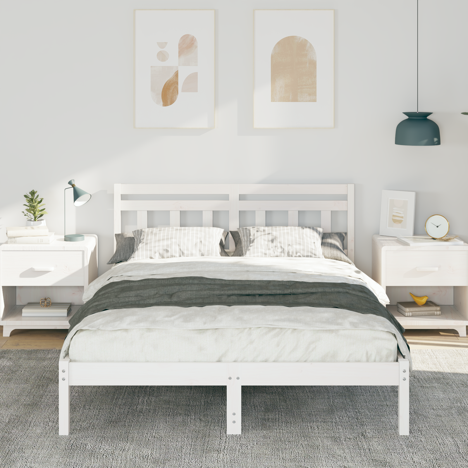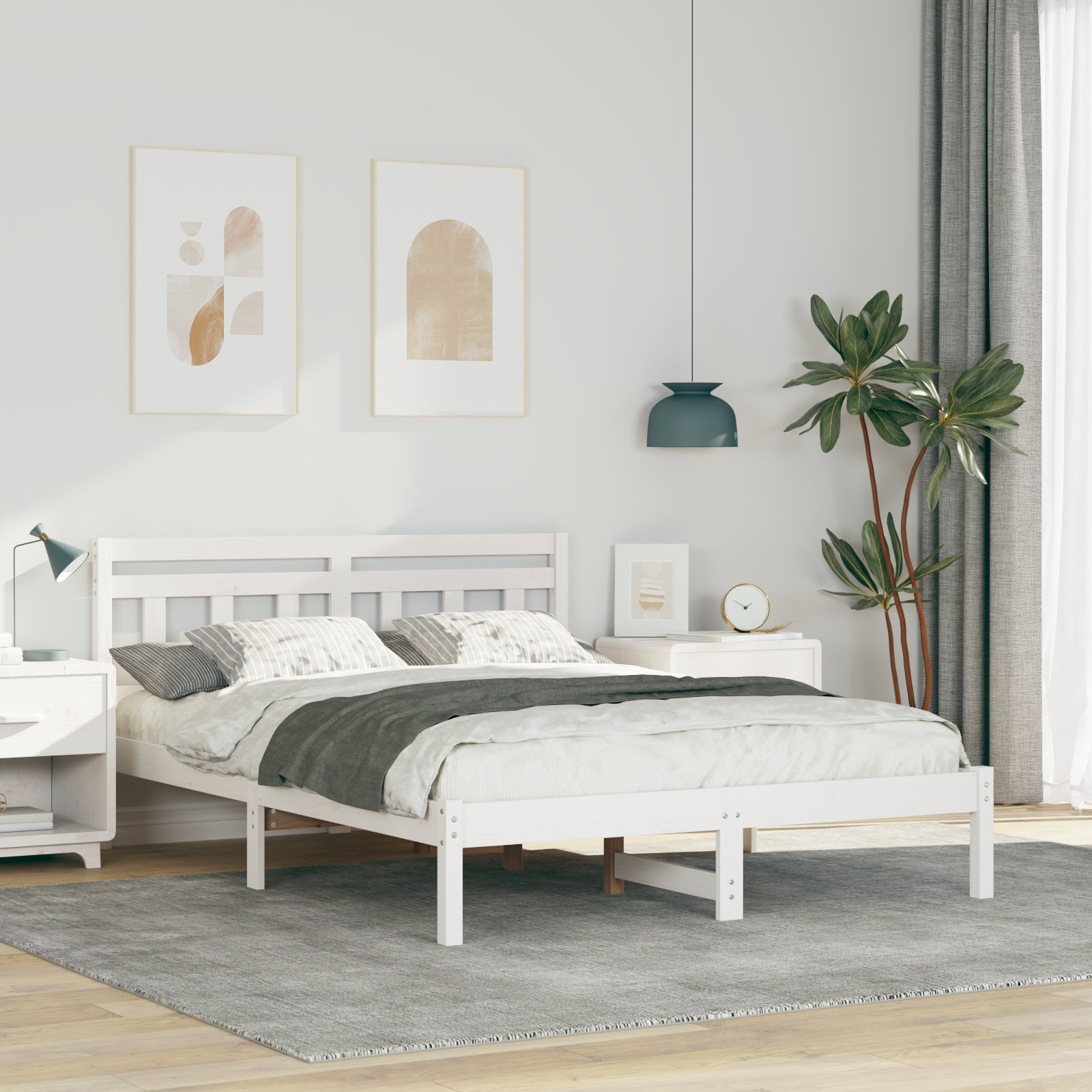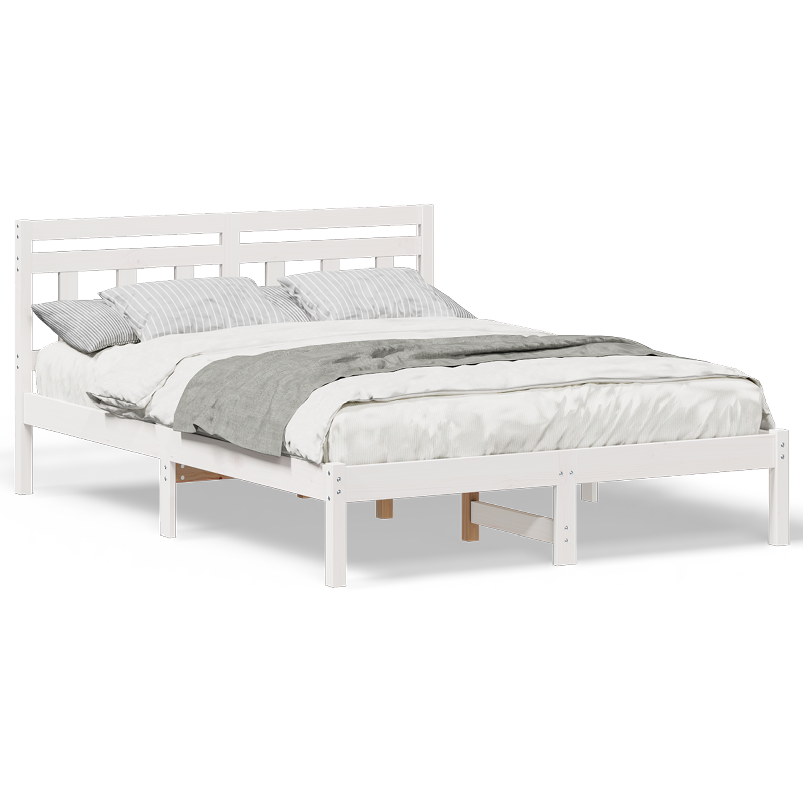 Bettgestell mit Kopfteil Weiß Kiefernholz