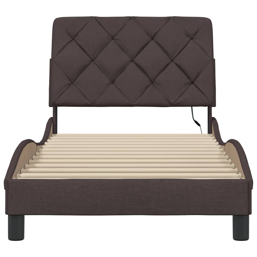 Bettgestell mit LED ohne Matratze Dunkelbraun 90x200 cm Stoff