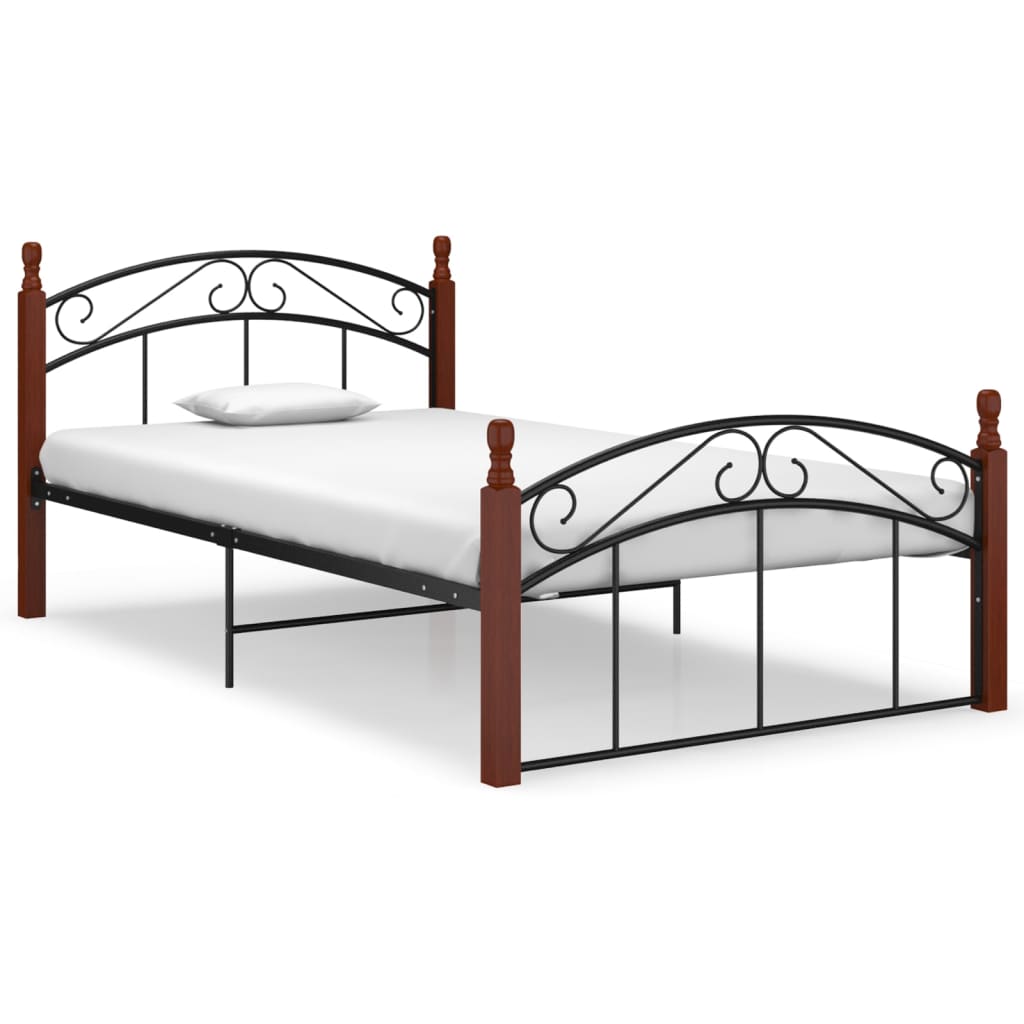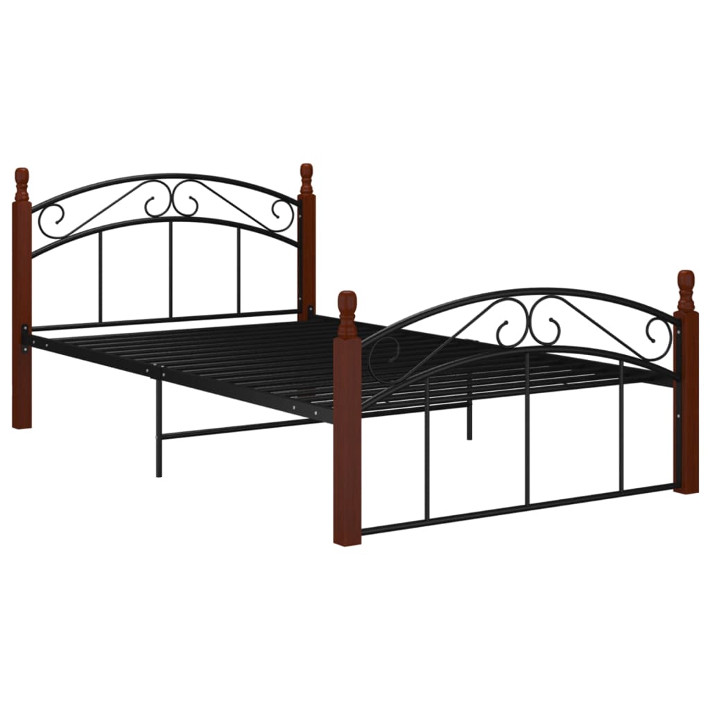Bettgestell Schwarz Metall und Massivholz Eiche 120x200 cm