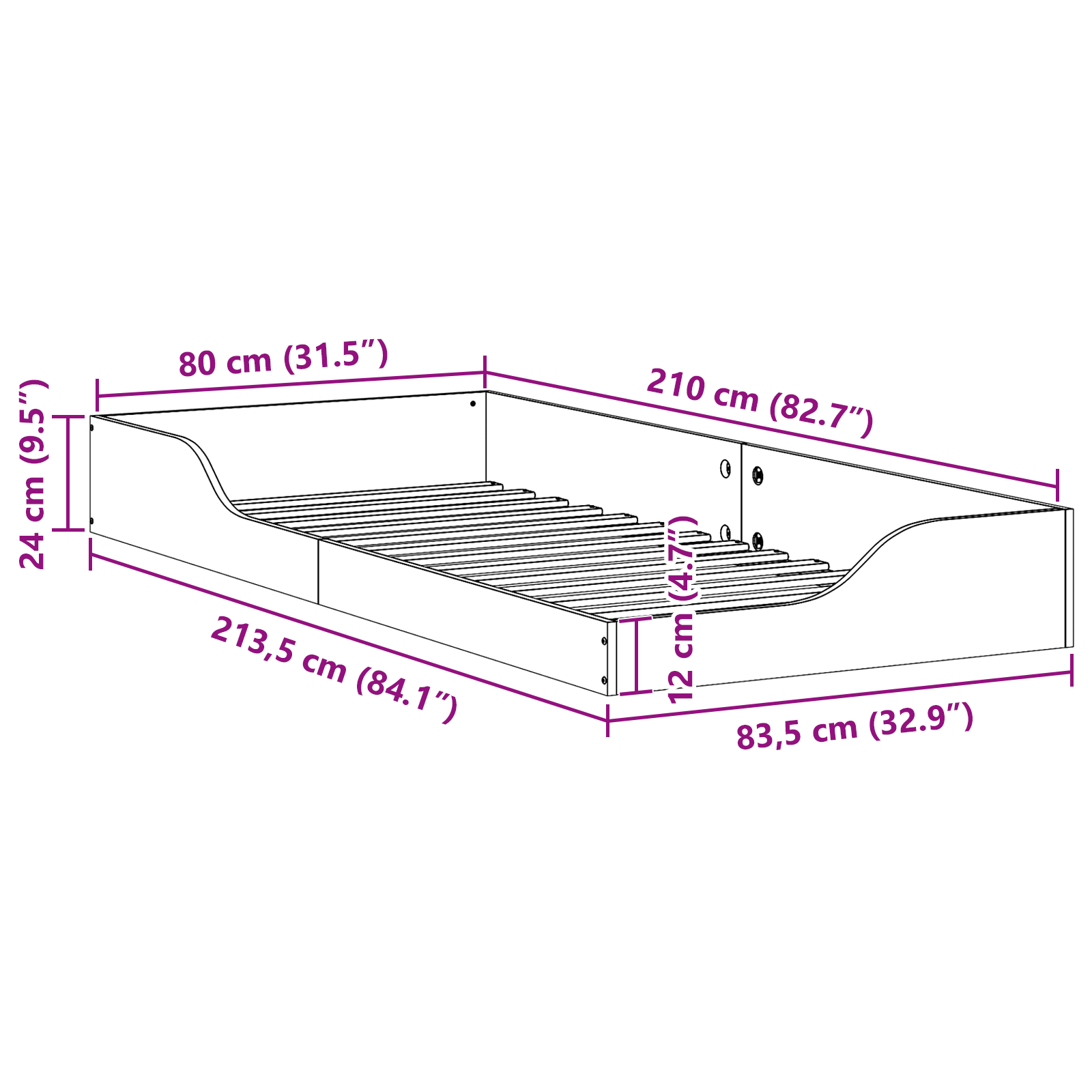 Bodenbettgestell Wachsbraun 80 x 210 cm Massivholz Kiefer