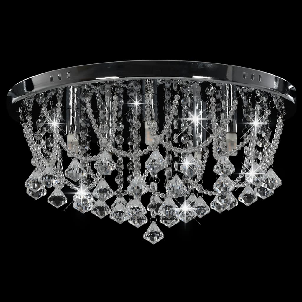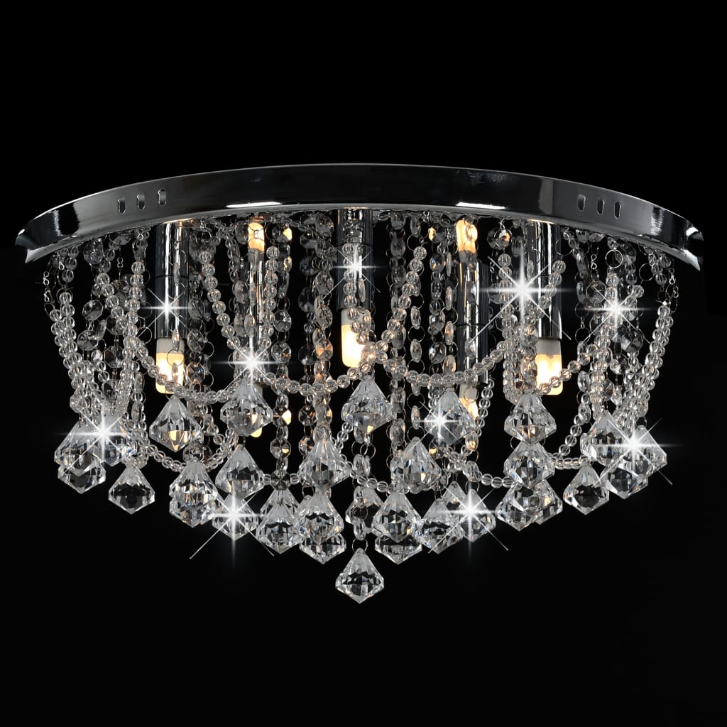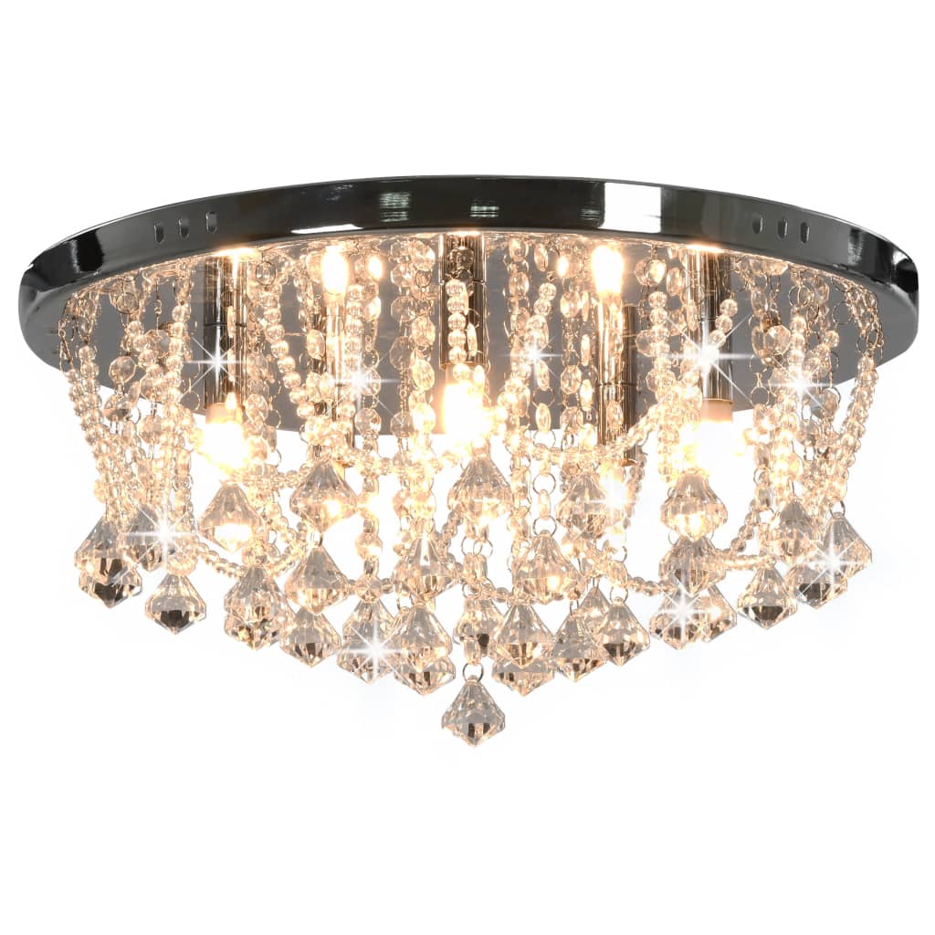 Deckenleuchte mit Kristallperlen Silbern Rund 4x G9 Glühbirnen