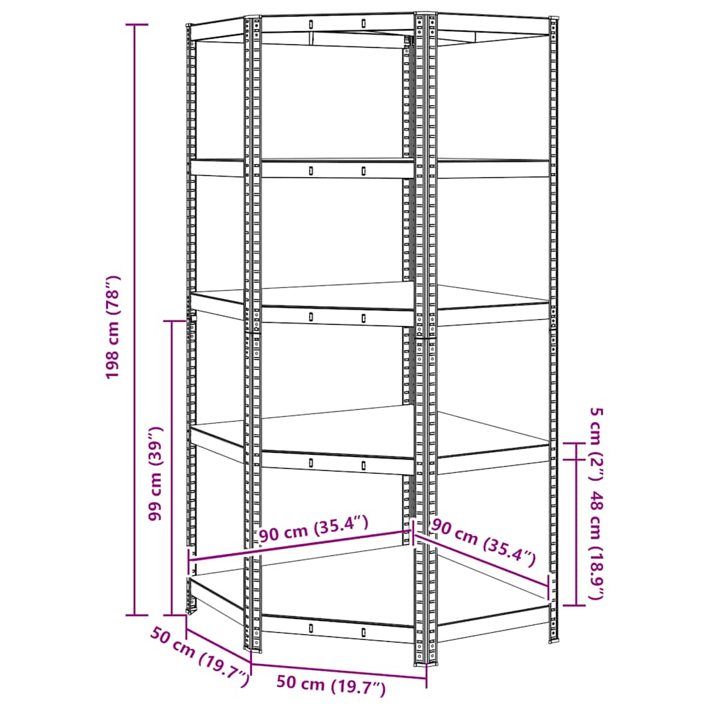 Eckregal mit 5 Böden Silbern Stahl & Holzwerkstoff