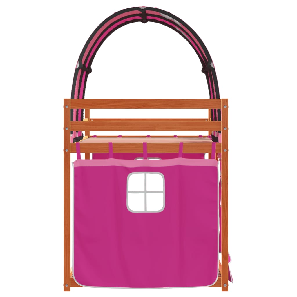 Etagenbett mit Vorhängen Rosa 80x200 cm Massivholz Kiefer