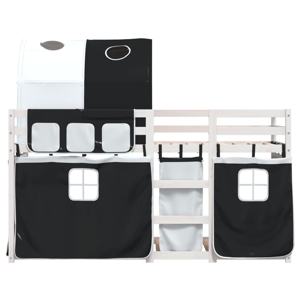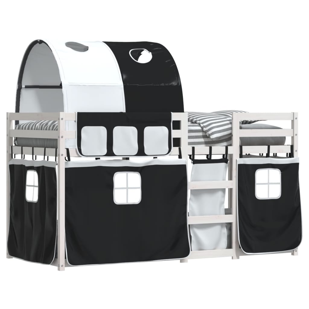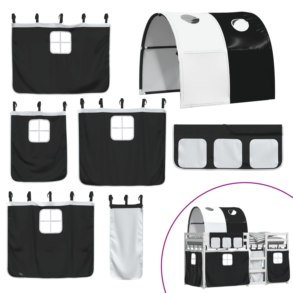 Etagenbett mit Vorhängen Weiß Schwarz 90x200 cm Kiefernholz