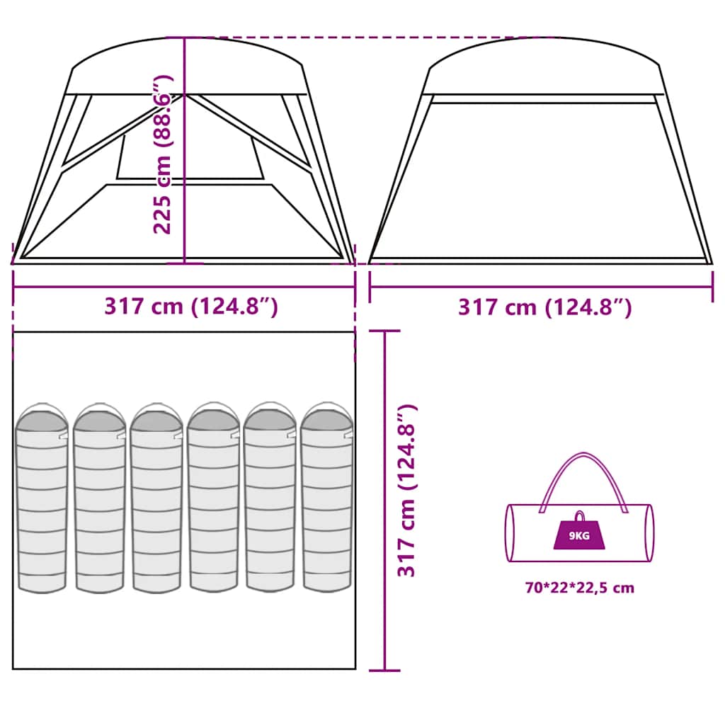 - Gesamtabmessungen: 317 x 317 x 225 cm (L x B x H)