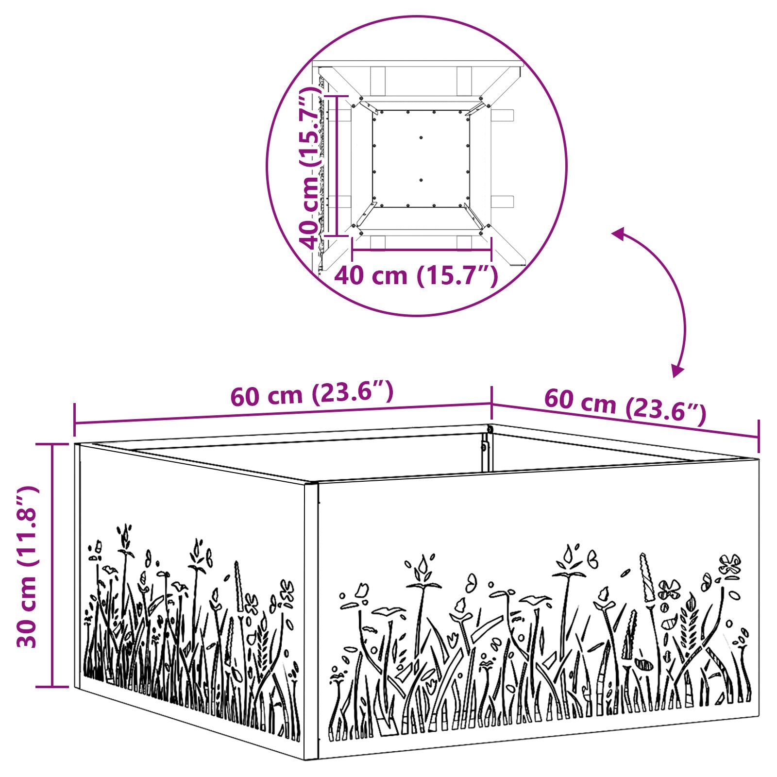 Feuerplatz Braun 60 x 60 x 30 cm Witterungsbeständiger Stahl