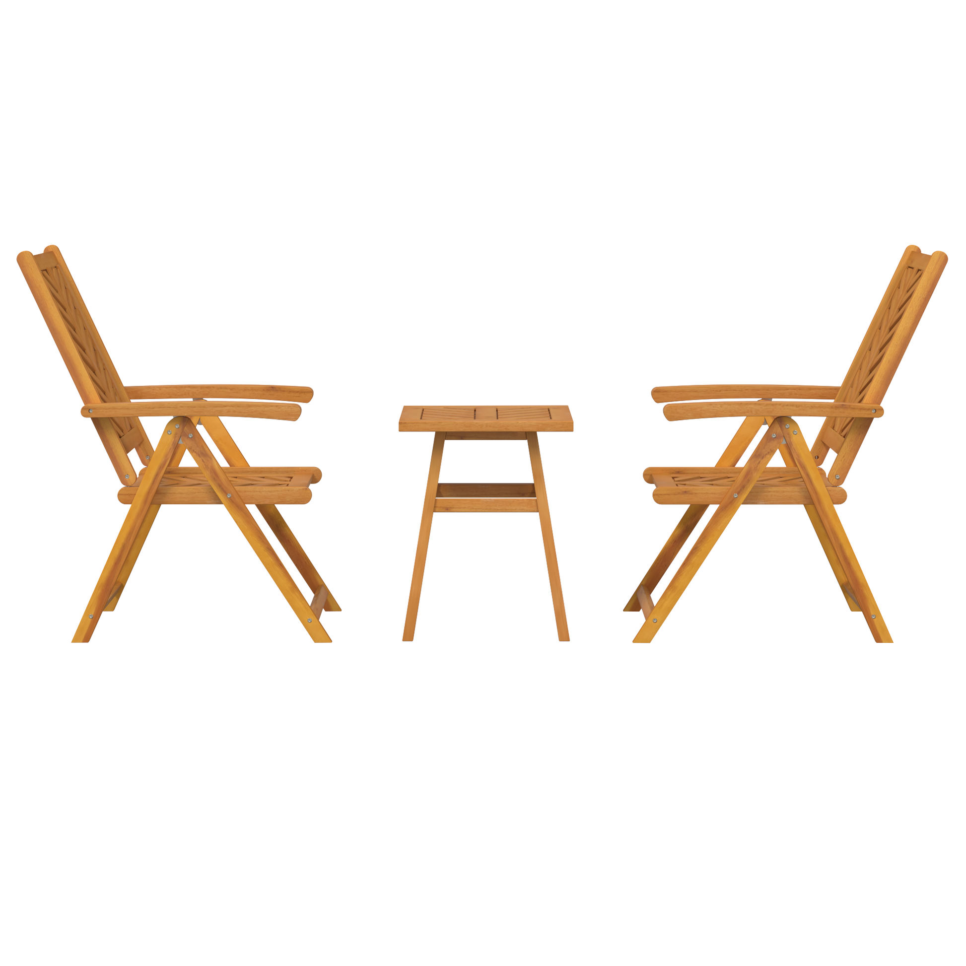 Dieses moderne Garten-Esstisch-Set ist der Inbegriff von zeitgenössischem Stil, kombiniert mit praktischem Design. Aus solidem Akazienholz gemacht, hat es eine tolle optische Anziehungskraft, die jeden Garten in einen stilvollen Rückzugsort verwandelt. Der warme, satte Braunton strahlt Ruhe und Eleganz aus, perfekt für gesellige Runden im Freien oder einfach zum Relaxen. Materialien: Das Essset besteht vollständig aus solidem Akazienholz, das für seine Stärke und Haltbarkeit bekannt ist. Es ist die ideale Wahl für jedes Wetter. Die natürliche Maserung und Textur des Holzes bringen Wärme und Charakter mit sich, was die Attraktivität jedes Außenbereichs steigert. Enthaltene Komponenten: Das Set hat zwei Liegen und einen Tisch. Jede Liege hat Armlehnen und eine Rückenlehne, die für Komfort und Stütze beim Sitzen sorgen. Die große Tischfläche ist perfekt für Getränke, Snacks oder Deko und bringt Charme in deinen Garten. Eigenschaften / Funktion / Design: Das schlanke, moderne Design des Sets hat klare Linien und ein minimalistisches Design. Die Liegefunktion der Stühle verstärkt den Komfort, ob beim Entspannen oder Essen, was das Set für verschiedene Umgebungen vielseitig macht. Empfohlene Verwendung: Ideal für Gartenpavillons oder Terrassen, ist das Set der Mittelpunkt für Outdoor-Essen und Geselligkeit. Ob beim Grillen im Sommer oder beim ruhigen Mittagessen, es verbessert das Erlebnis im Freien. Pflege und Wartung: Um das tolle Aussehen zu erhalten, wische das Set einfach mit einem trockenen Tuch ab, um Staub und Schmutz zu entfernen. Diese einfache Pflege-Routine sichert die anhaltende Schönheit des Holzes und erhält seine natürliche Textur.