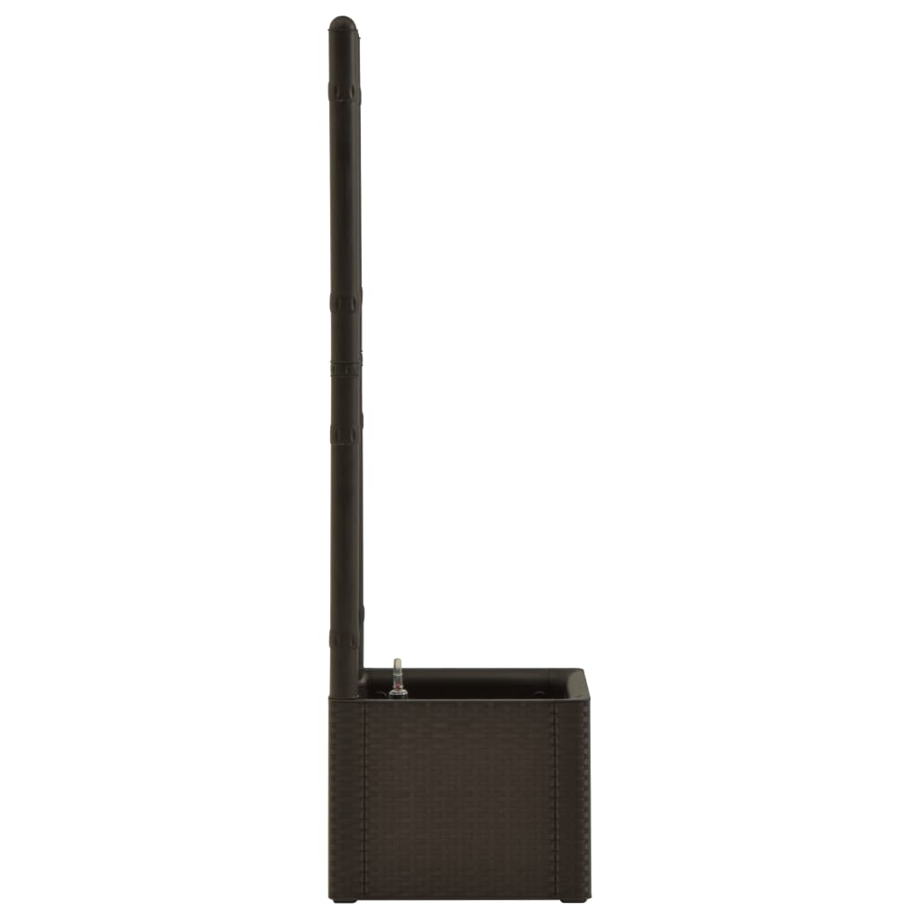 Schaffen Sie einen schönen Hingucker mit diesem eleganten, funktionalen und einzigartigen selbstbewässernden Hochbeet! Dieser Spalier-Pflanzkübel hat einen großen Blumenkasten, der eine große Anzahl grüner Pflanzen und Blumen aufnehmen kann. Das eingebaute Spalier bietet eine hervorragende Stütze für Kletterpflanzen wie Kräuter, Tomaten, Bohnen usw. Es besteht aus robustem UV-, wetter- und frostbeständigem Kunststoff und ist für den Innen- und Außenbereich geeignet. Das Design ähnelt einer täuschend realen Rattanstruktur. Das Material ist waschbar und leicht zu reinigen. Darüber hinaus kann diese Box Pflanzen automatisch gießen, indem sie Feuchtigkeit aus ihrem 35-l-Wasserreservoir ableitet, und verfügt über Wasserüberlauflöcher, um ein Überwässern zu verhindern. Die Füllstandsanzeige ist enthalten.