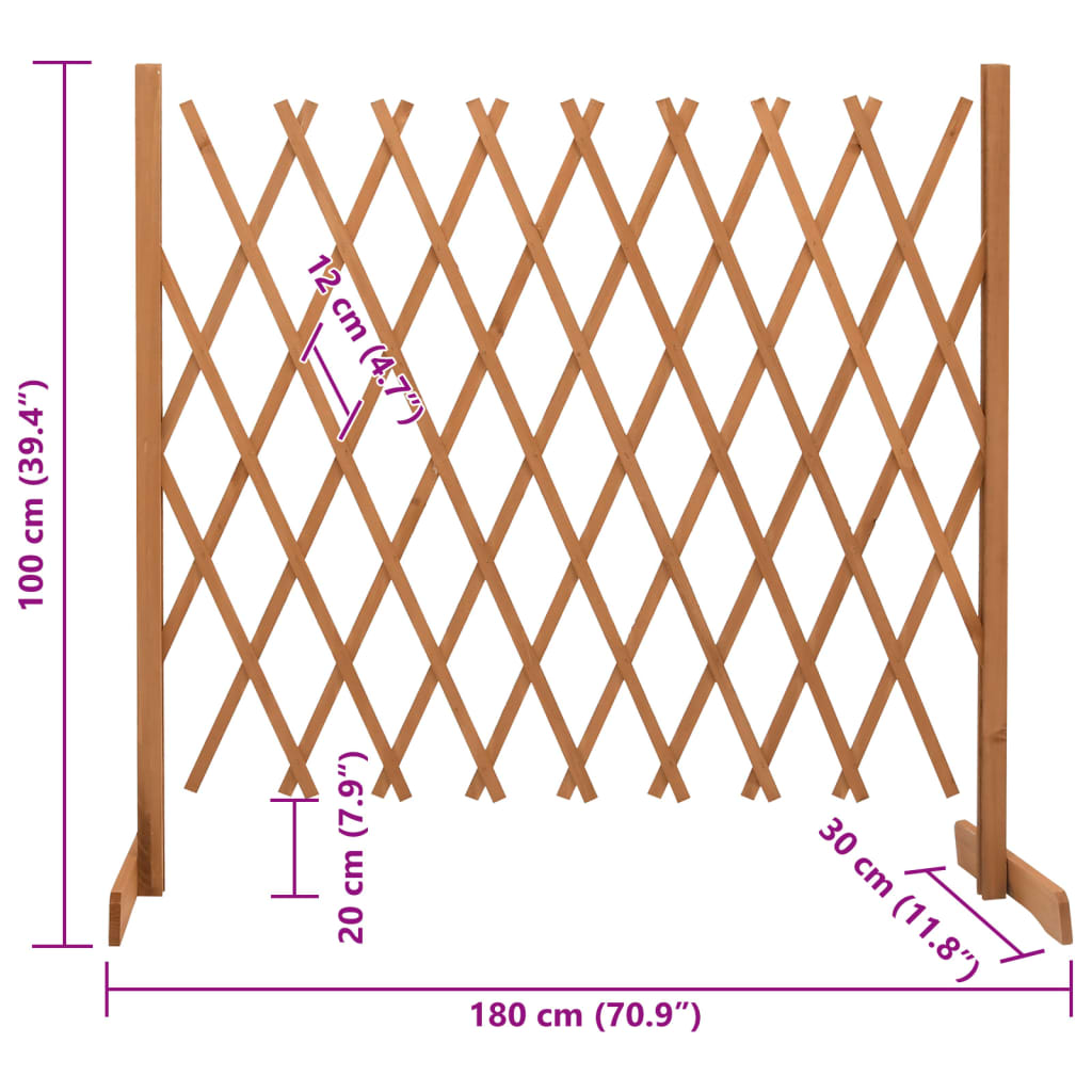 Dieser Massivholz-Rankzaun kann Ihren Garten wunderschön abgrenzen, Privatsphäre zu schaffen und Kletterpflanzen eine Rankhilfe bieten. Dieses Zaunelement aus massivem Tannenholz ist robust und für den Außenbereich bestens geeignet. Jeder Spalierzaun kann auf eine Breite von bis zu 180 cm verlängert werden. Durch sein erweiterbares Design ist das Zaunelement mit Gärten aller Größen kompatibel. Es sieht auch entlang der Blumenbeete oder Gartenwegen hervorragend aus.