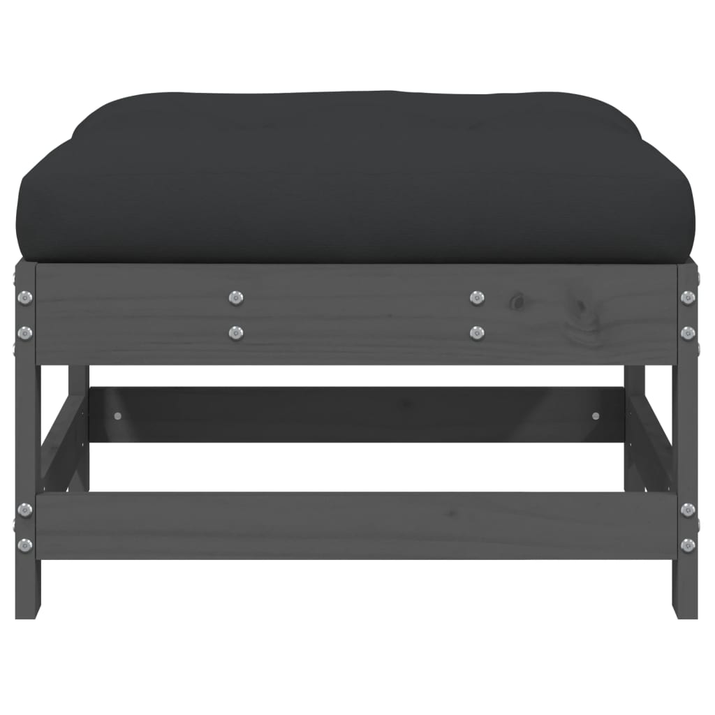 Gartenhocker mit Kissen Grau Massivholz Kiefer