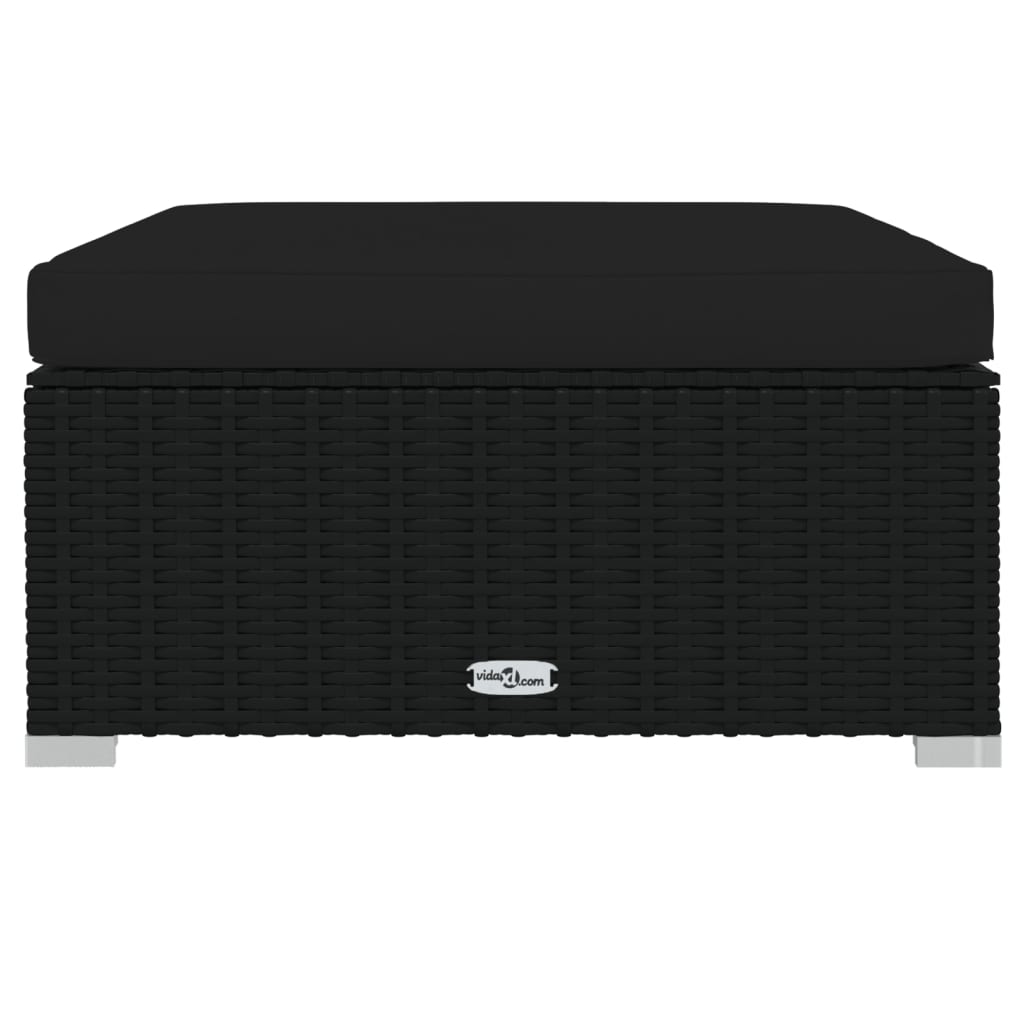 Gartenhocker mit Kissen Schwarz 70x70x30 cm Poly Rattan