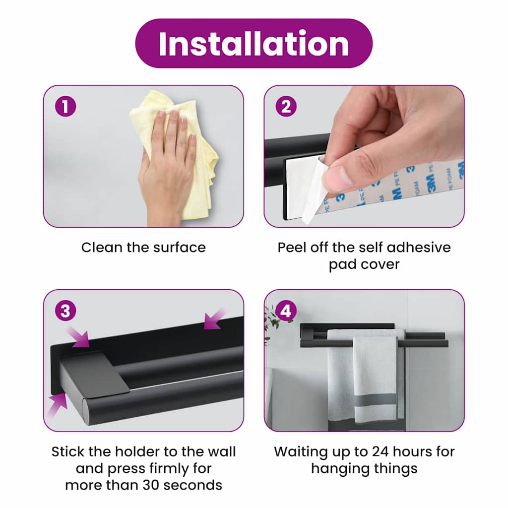 Handtuchhalter Schwarz 40 x 9 x 4 cm Edelstahl