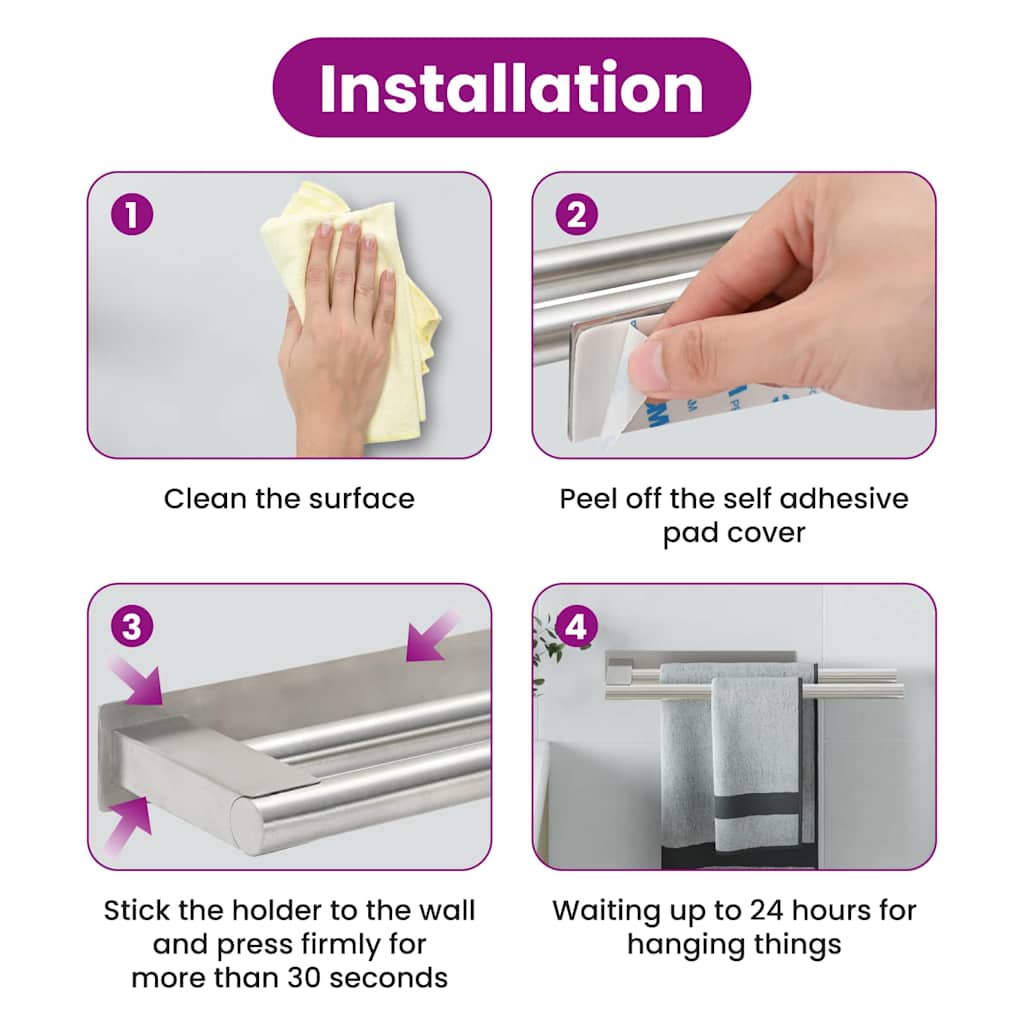 Dieser moderne Handtuchhalter bringt Stil und Funktion in dein Badezimmer. Die glatte, gebürstete Oberfläche verleiht ihm einen eleganten Touch, der sowohl mit modernen als auch klassischen Looks harmoniert. Stell dir vor, er hängt elegant an deiner Wand und hält deine Handtücher schön in Form. Mit seinem schlichten Design und den robusten Materialien bleibt dein Raum ordentlich, ohne dass du Abstriche beim Stil machen musst. Edelstahl-Konstruktion Der Handtuchhalter aus Edelstahl ist stark, rostbeständig und sieht immer gut aus. Selbst in feuchten Bädern bleibt er ansprechend. Langlebig und zuverlässig, hält die Konstruktion das Gewicht der Handtücher mühelos und sorgt dafür, dass sie schnell trocknen. Wandmontierbares Design Clever gestaltet, nutzt dieser Halter den Raum optimal. So bleibt der Boden frei und die Handtücher immer griffbereit. Er verbindet eine schicke Optik mit praktischen Vorteilen. Verschlankte Gestaltung Mit einem klaren, simplen Design fügt sich der Halter mühelos in jedes Bad ein. Keine überflüssigen Verzierungen – stattdessen moderne Linien, die zeitlos wirken. Einfache Reinigung & Wartung Dank der glatten Oberfläche ist die Pflege ein Kinderspiel. Wische einfach mit einem weichen Tuch drüber, um den Glanz zu erhalten. So ist dieser Handtuchhalter ideal für vielbeschäftigte Haushalte. Montage & Installation Die Installation ist ganz unkompliziert. Du brauchst nur einen Schraubendreher und die 3M-Selbstklebepads, die dabei sind. Alle erforderlichen Teile sind enthalten, um dir die Montage selber leicht zu machen. Es kann hilfreich sein, einen Freund zur Hilfe zu haben, um alles genau zu installieren.