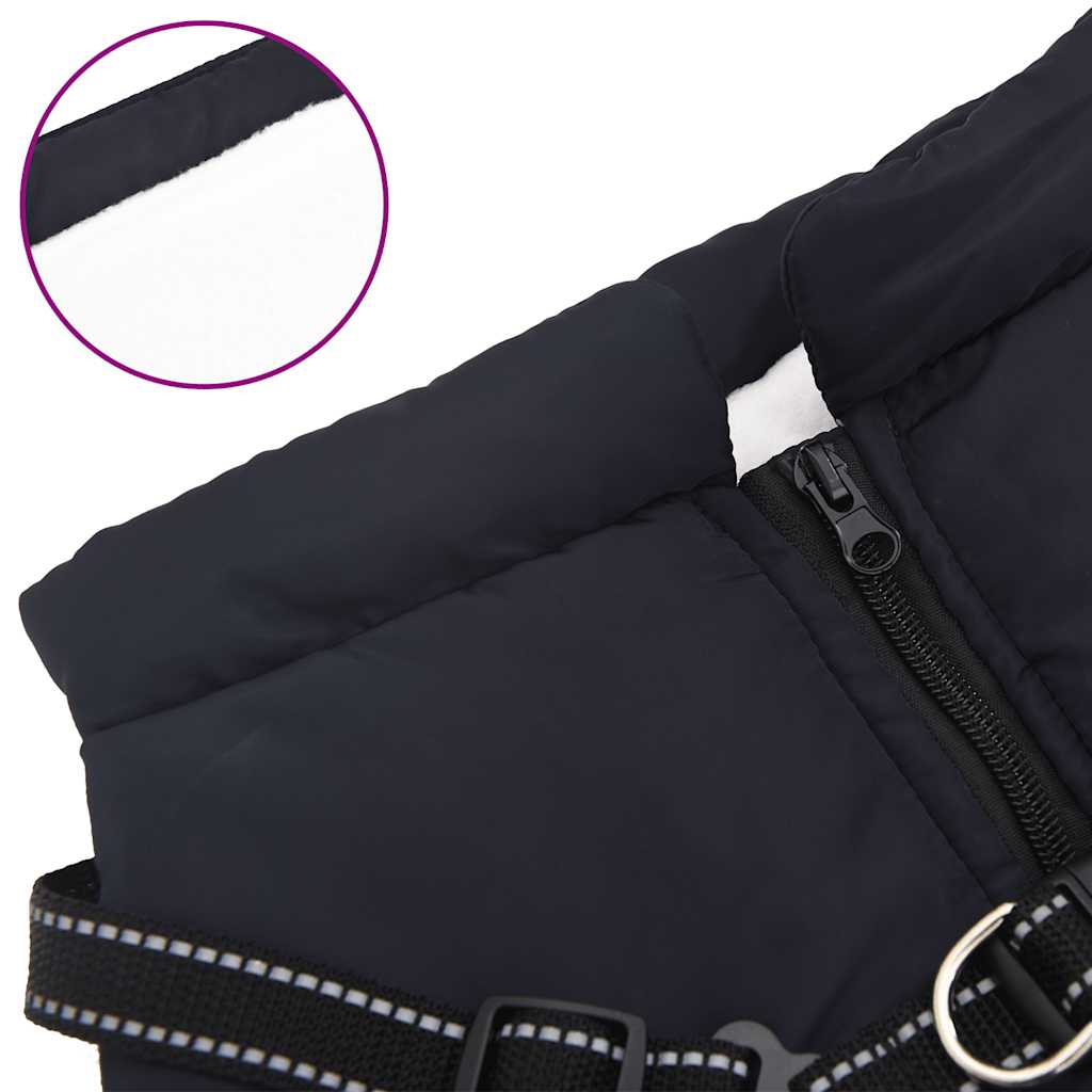 Mit diesem gemütlichen Hundemantel mit integriertem Geschirr hältst du deinen Hund an kalten Tagen angenehm warm! Wasserdicht und bequem: Dieser Hundemantel verfügt über eine wasserdichte Außenschicht, um dein Haustier trocken zu halten, ein weiches Fleece-Futter für Wärme und eine zusätzliche Polsterung für Komfort. Er eignet sich perfekt für Outdoor-Abenteuer bei jedem Wetter.Verstellbares Geschirr: Dieser Hundemantel verfügt über verstellbare Gurte, um eine perfekte Passform und höchsten Komfort zu bieten.Reflexstreifen: Dank der Reflexstreifen sorgt die Hundeweste für eine bessere Sichtbarkeit bei schlechten Lichtverhältnissen, um deine Sicherheit und die Sicherheit deines Hundes bei Nachtspaziergängen zu gewährleisten.Praktischer Reißverschluss: Der Reißverschluss vereinfacht das An- und Ausziehen deines Haustieres, um dir Zeit zu sparen, wenn du losziehst.D-Ring-Befestigung: Die stabilen D-Ringe ermöglichen eine sichere Befestigung der Leine, was zusätzliche Sicherheit bietet und dieses Produkt zu einer idealen Wahl für Spaziergänge macht. Gut zu wissen:Wenn die Messung zwischen zwei Größen liegt oder wenn Ihr Hund stark oder buschig ist. Wir empfehlen Ihnen, eine etwas größere Größe zu kaufen, um sicherzustellen, dass sie Ihrem Hund bequem passt.