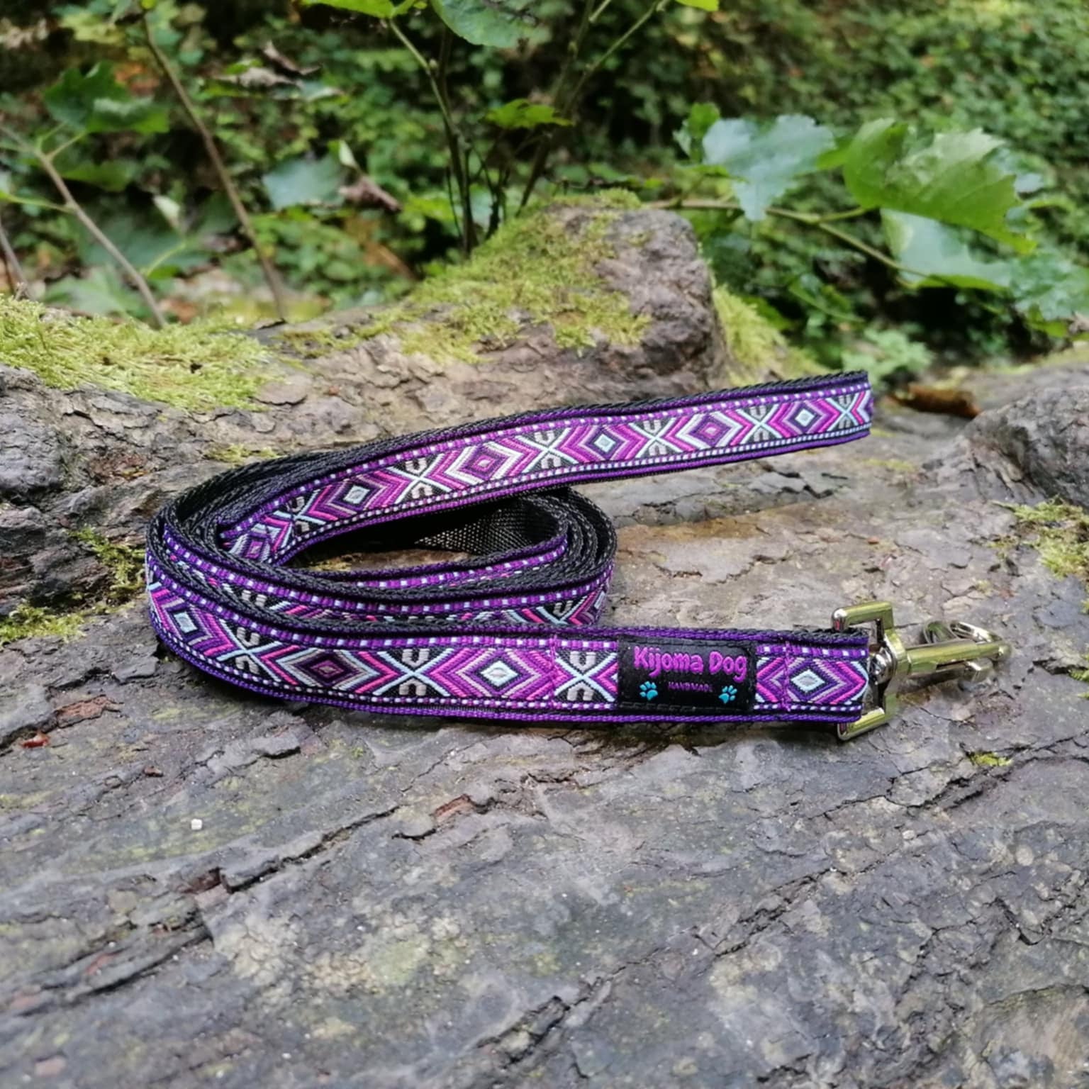 Die Leine besteht aus starkem Gurtband (Nylon) und hat einen Karabiner.