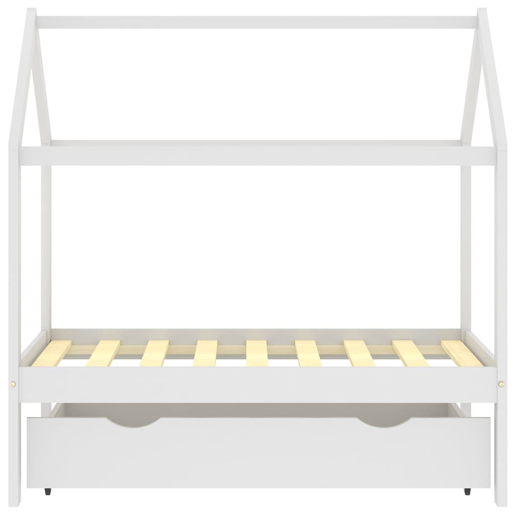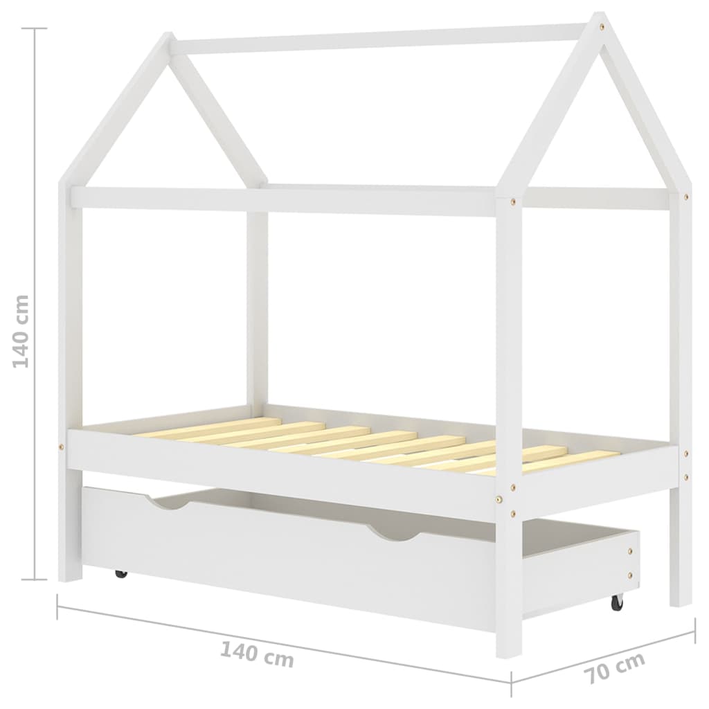 Kinderbett mit Schublade Weiß Massivholz Kiefer 70x140 cm
