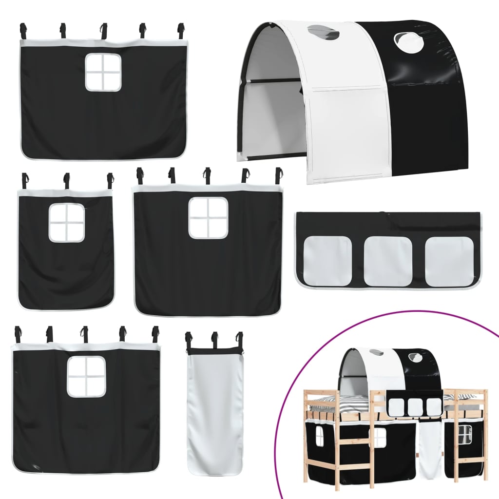 Kinderhochbett mit Tunnel Weiß & Schwarz 90x190 cm Kiefernholz