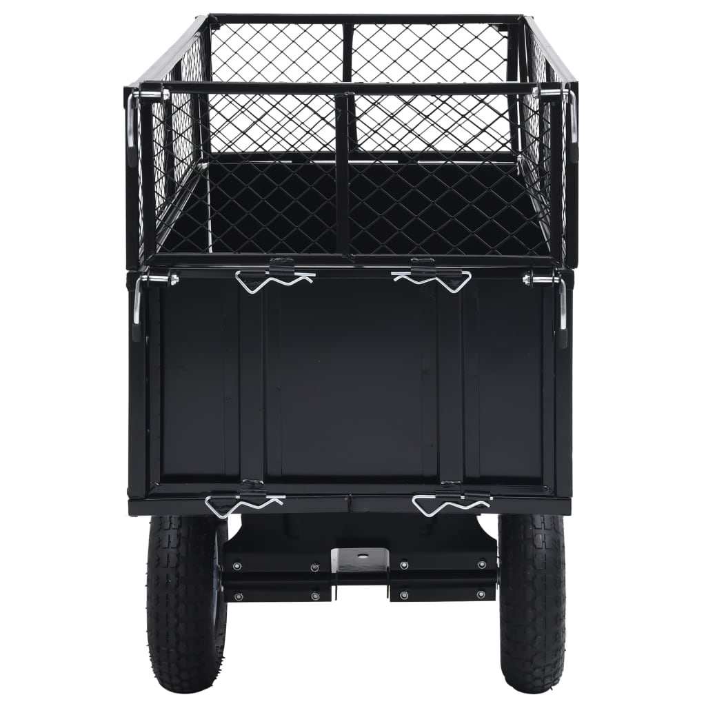Dieser Rasentraktor-Kippanhänger kann an alle Standard-Rasentraktoren angehängt werden. Es ist ein ausgezeichneter Helfer in Ihrem Garten, mit dem sich anspruchsvolle Arbeiten leicht erledigen lassen. Dieser Gartenanhänger hat eine Ladekapazität von bis zu 150 kg. Die Höhe kann bis zu +22 cm erweitert werden. Die Seitenwände sind abklappbar und nach hinten kippbar. Die Lieferung umfasst auch eine Universal-Kupplungsvorrichtung zur Befestigung des Wagens (mit Bolzen).