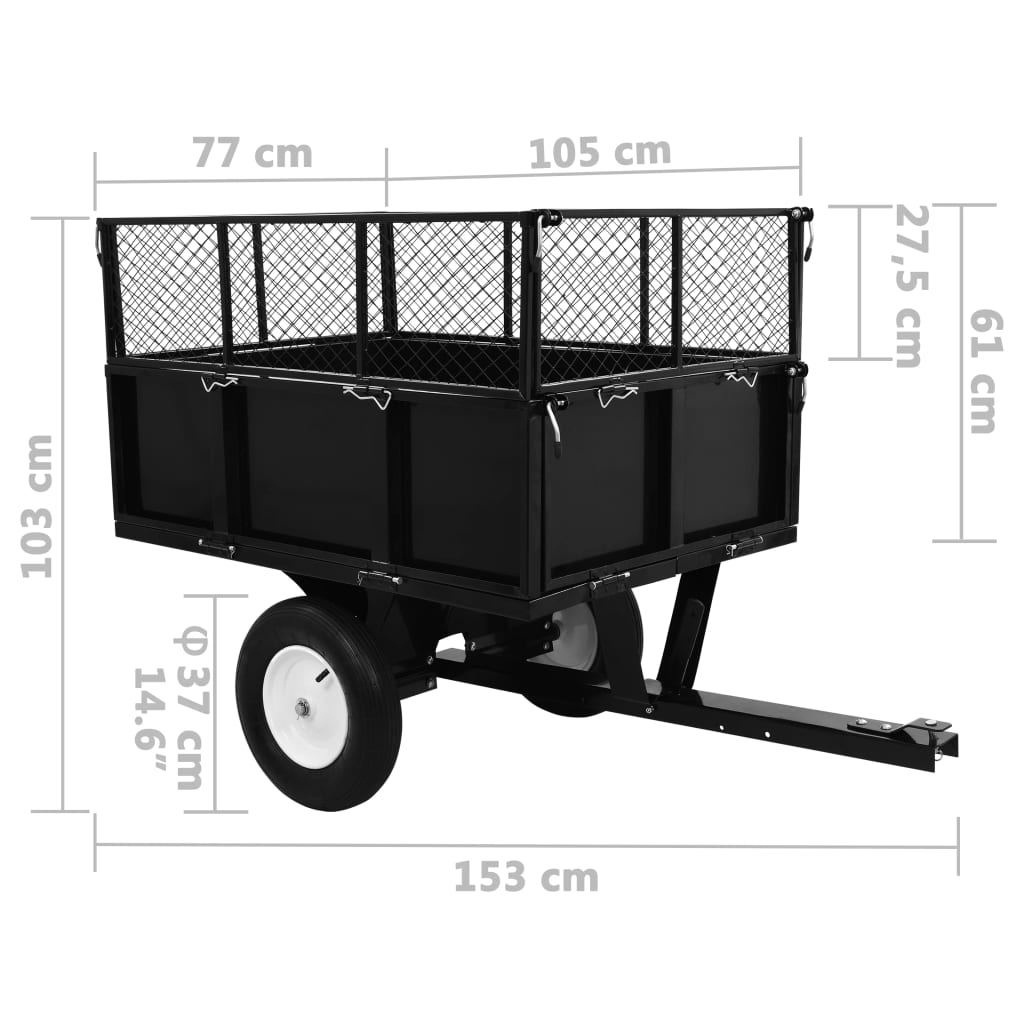 Dieser Rasenmäher-Kippanhänger kann an alle gängigen Rasentraktoren angehängt werden. Er ist ein robuster Anhänger zum Transport von Erde, Torf, Mist, Kompost, Blättern, Früchten, Baumaterial usw. Dieser Gartenanhänger hat eine Ladekapazität von bis zu 300 kg. Die Höhe kann auf +30 cm erweitert werden. Die Seitenwände sind abklappbar und nach hinten kippbar. Inklusive Universal-Kupplungsvorrichtung (mit Bolzen).