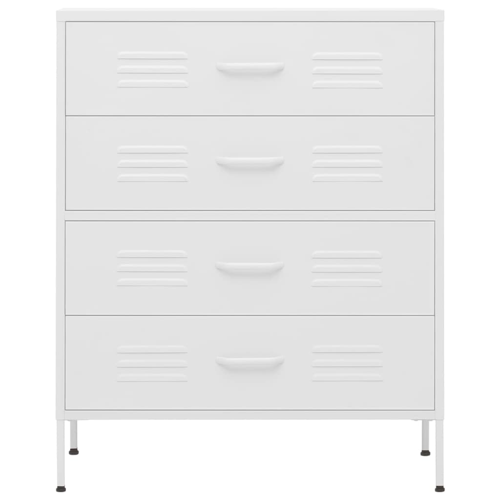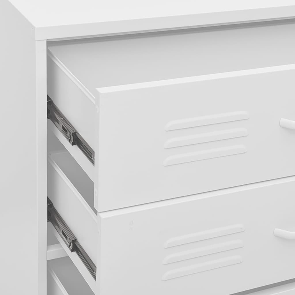 Dieses Sideboard mit praktischem Design ist ein echter Hingucker in jedem Raum. Diese Anrichte aus Stahl ist robust und langlebig. An der Unterseite befinden sich Nivellierer, mit denen Sie die Höhe Ihren Bedürfnissen anpassen können. Die Schubladen können vollständig ausgezogen werden und sind ideal, um alle Arten von kleineren Gegenständen organisiert und griffbereit zu halten. Schubladen mit kugelgelagerten Schienen sorgen für ein sanftes Öffnen und Schließen auch bei erhöhter Belastung.