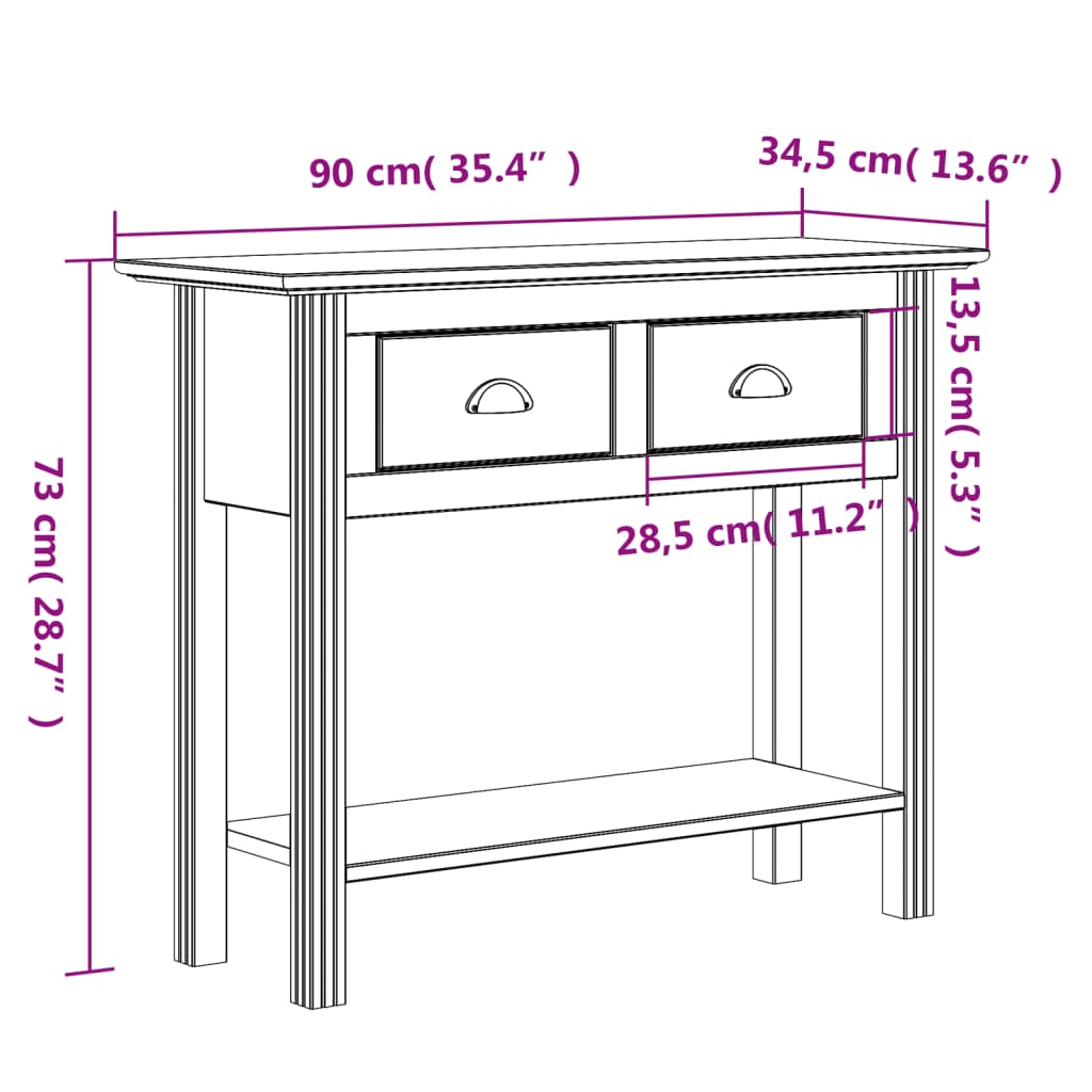 Dieser klassische Konsolentisch ist eine praktische und dekorative Ergänzung zu deiner Wohnungseinrichtung. Massives Kiefernholz: Massives Kiefernholz ist ein schönes Naturmaterial. Kiefernholz weist eine gerade Maserung auf und die Aststellen verleihen dem Material seine charakteristische, rustikale Optik. Aus massivem Kiefernholz gefertigt, ist der Sofatisch robust und stabil.Reichlich Stauraum: Dieser praktische Dielentisch verfügt über 2 Schubladen und eine untere Ablage, die reichlich Platz für deine Bücher, Pflanzen, Aufbewahrungsboxen, Dekorationen usw. bieten.Präsentation: Du kannst auch deine Lieblingsfotos, Dekoartikel oder Blumen auf dem Beistelltisch zur Schau stellen, um deinen Wohnraum schöner zu gestalten.Metallgriffe: Die Metallgriffe erleichtern das Öffnen und Schließen der Schubladen und tragen zur ansprechenden Optik des Flurtisches bei.Charmanter französischer Stil: Verleihe deiner Inneneinrichtung eine inspirierende französische Note! Achtung:Um ein Umkippen zu vermeiden, sollte dieses Produkt mit der mitgelieferten Wandhalterung gesichert werden.