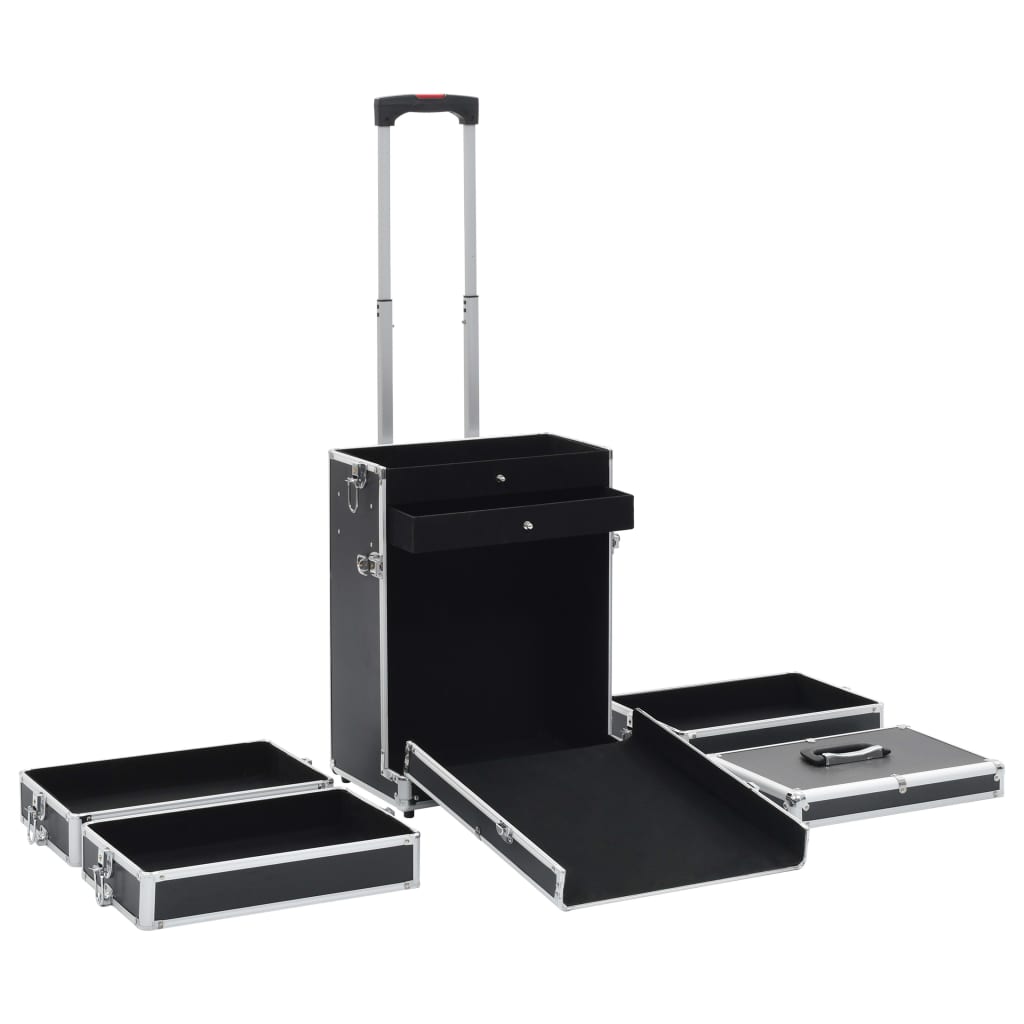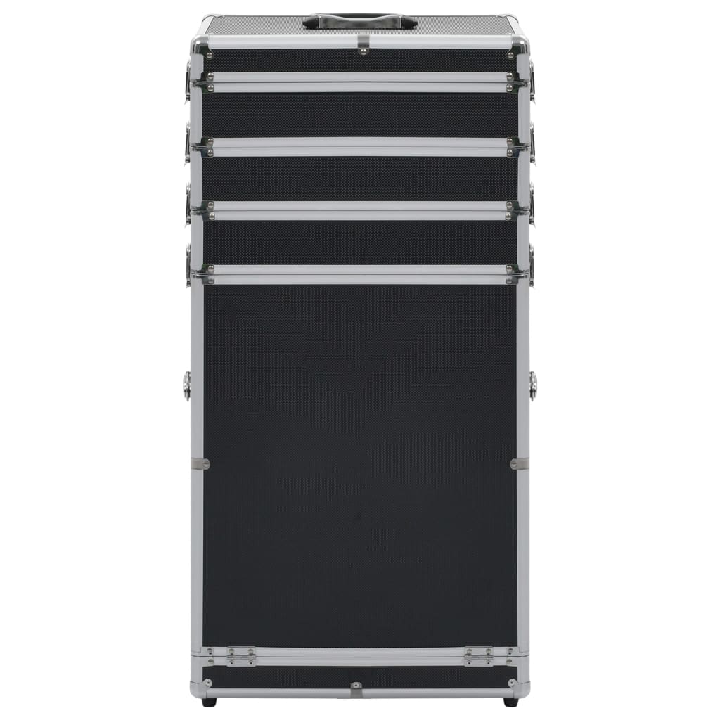 Unser Kosmetikkoffer ist die ideale Lösung, um Ihre Kosmetika übersichtlich zu organisieren. Packen Sie einfach alles, was Sie brauchen, in diesem praktischen Kosmetikkoffer ein und nehmen Sie ihn mit! Mit diesem aus Holz, ABS-Blech und Aluminium gefertigten Kosmetikkoffer können Sie Ihre Kosmetika problemlos aufbewahren und in einwandfreiem Zustand halten. Dieser Kosmetikkoffer verfügt über 4 Stufen und 1 Schublade und bietet daher ausreichend Stauraum für Ihre Kosmetik- und Schönheitsprodukte. Er verfügt über 4 abnehmbare Rollen und lässt sich daher ganz einfach umher verschieben und überall mitnehmen!