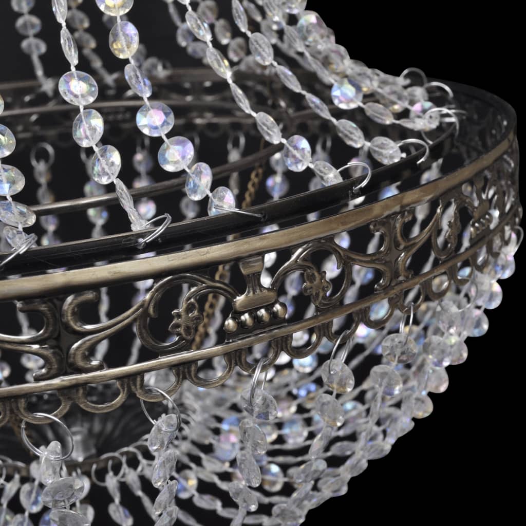 Mit seinem klassischen und eleganten Design ist dieser wunderschöne Kronleuchter ein Blickfang in jedem Raum und eignet sich sowohl für private als auch für gewerbliche Zwecke. Dank seines luxuriösen Designs findet dieser markante Kronleuchter den perfekten Platz in deinem Eingangsbereich, Esszimmer oder Wohnzimmer. Die hochwertigen Perlen glänzen und funkeln wie Sterne; sie fangen das Licht effektiv ein und reflektieren es, wobei das Lichtspektrum für ein grandioses Farbenspiel sorgt. Mit dieser eleganten Hängeleuchte kannst du dein Zuhause auf luxuriöse Weise dekorieren und erhellen. Das Leuchtmittel ist nicht im Lieferumfang enthalten.