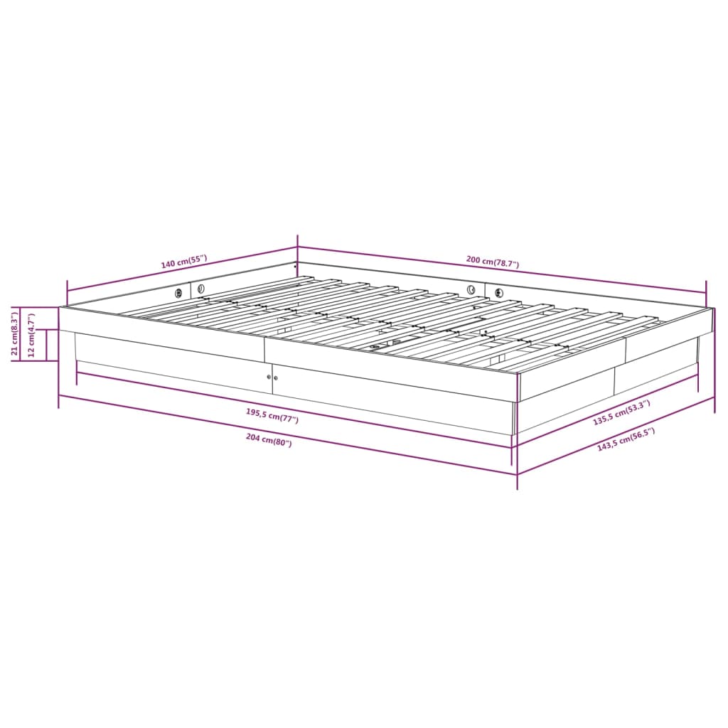 - Gesamtabmessungen: 204 x 143,5 x 21 cm (L x B x H)