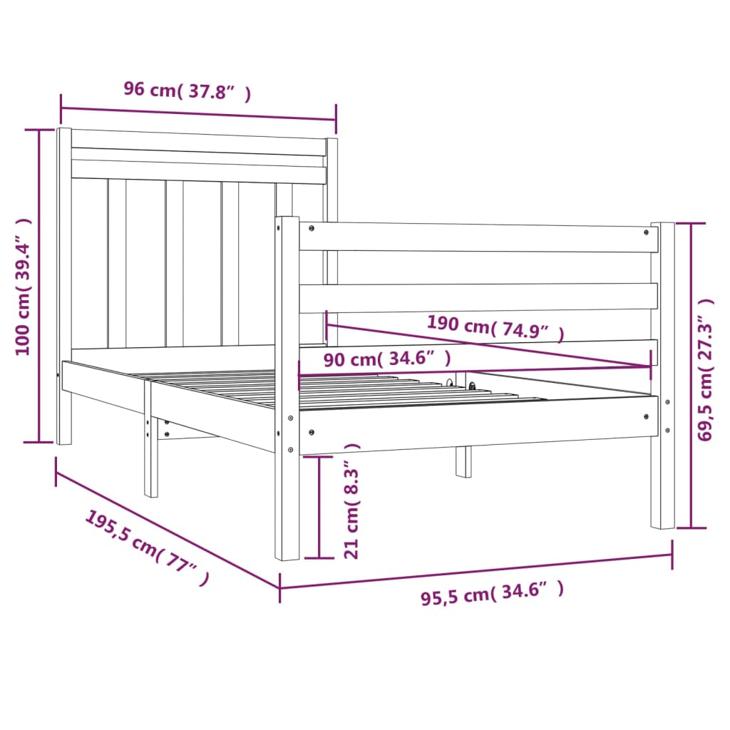 - Abmessungen des Bettgestells: 195,5 x 95,5 x 69,5 cm (L x B x H)