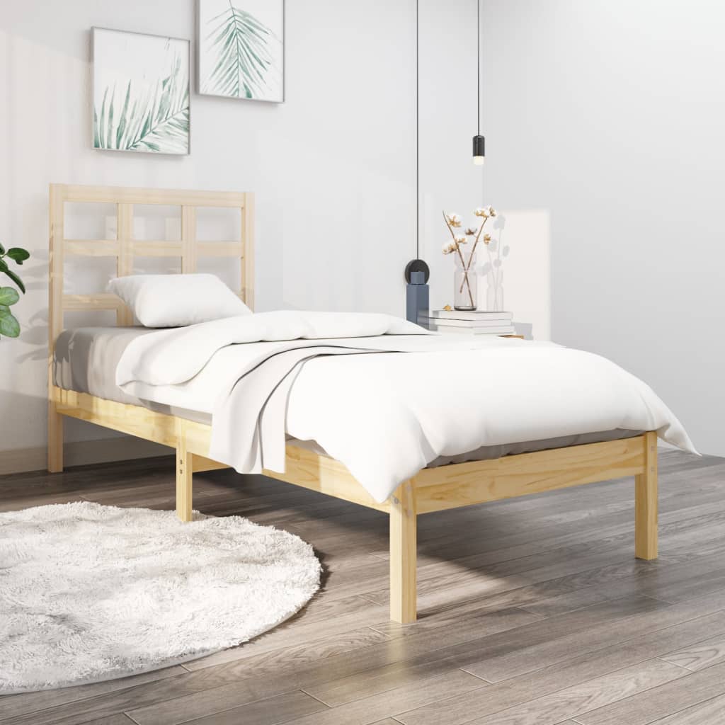 Mit seinem schlichten und dennoch zeitlosen Design ist dieses klassische Bett eine wirklich praktische und dekorative Ergänzung zu deinem Schlafzimmer. Massives Kiefernholz: Kiefer-Massivholz ist ein schönes Naturmaterial. Kiefernholz weist eine gerade Maserung auf und die Aststellen verleihen dem Holz seine charakteristische, rustikale Optik.Robuster Rahmen: Die Sperrholzlatten sorgen für eine gute Gewichtsverteilung und dafür, dass die Matratze während des Schlafes an Ort und Stelle bleibt.Komfortables Erlebnis: Mit einem Kopfteil versehen, sorgt dieses Holzbett dafür, dass du deine Nachtruhe genießt. Ob du dich am Kopfteil zurücklehnst, um etwas zu lesen, oder einfach nur einen süßen Traum hast, dieses Holzbett wird mit Sicherheit deine Bedürfnisse erfüllen. Hinweis:Die Matratze ist nicht enthalten. In unserem Shop finden Sie auch passende Matratzen.Dieser Bettrahmen ist für eine Matratze mit den Maßen 90 x 190 cm (3FT Single) geeignet.
