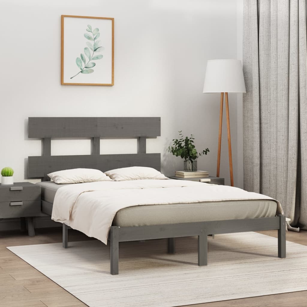 Massivholzbett Grau 200x200 cm