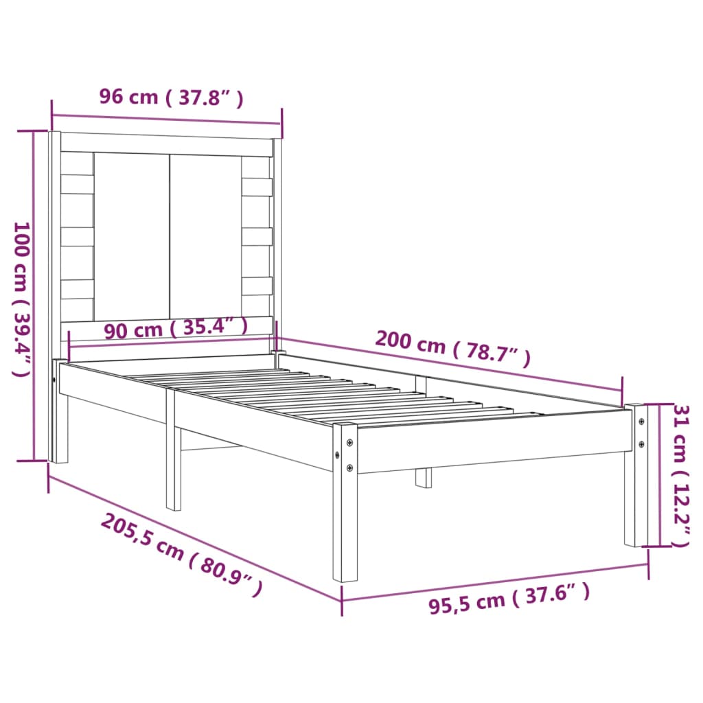 Massivholzbett ohne Matratze 90x200 Kiefernholz