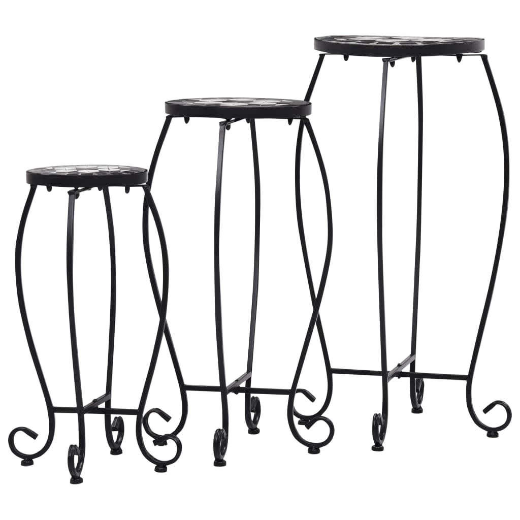 Mosaiktische 3 Stk. Keramik Schwarz und Weiß