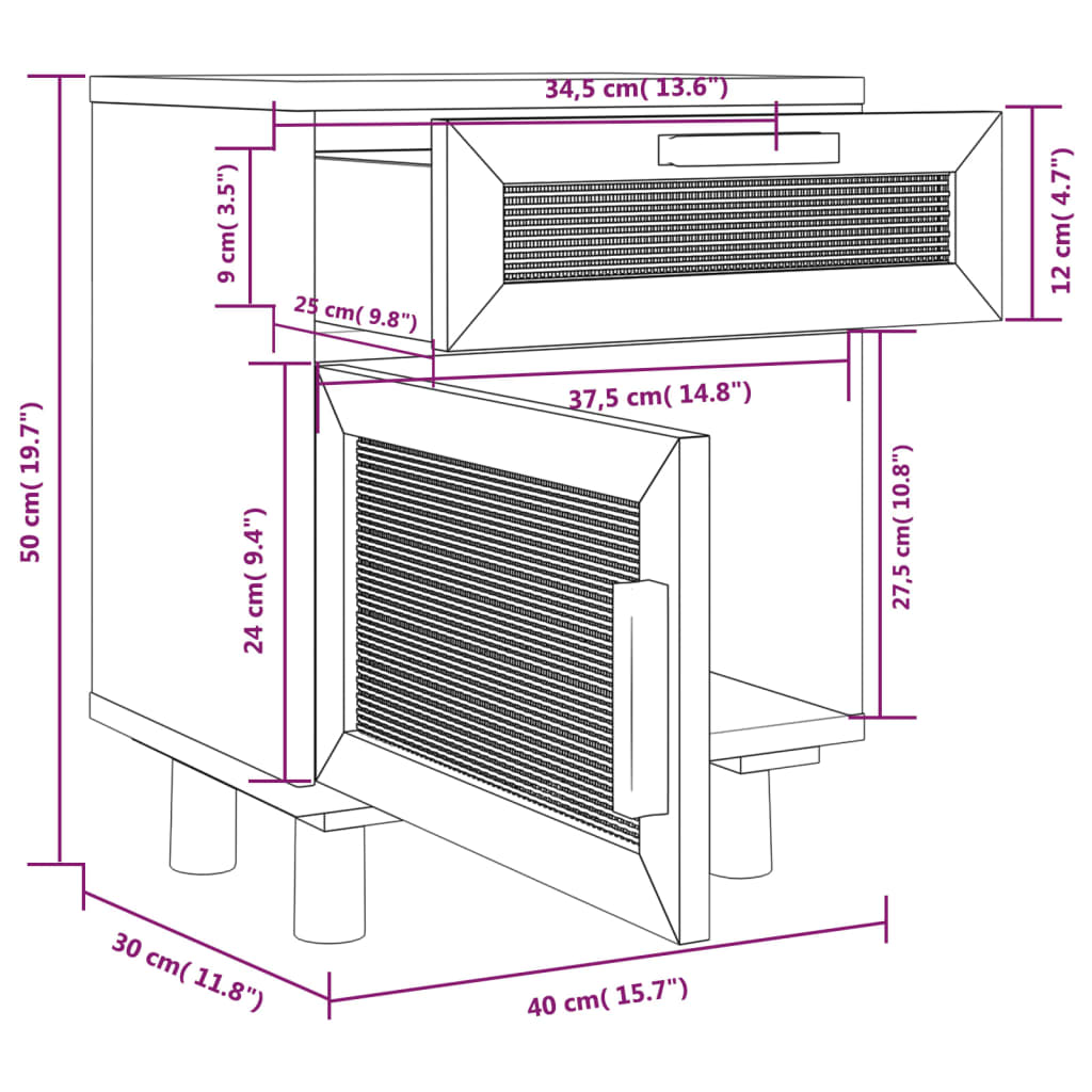 Nachttische 2 Stk. Weiß Massivholz Kiefer und Natur-Rattan