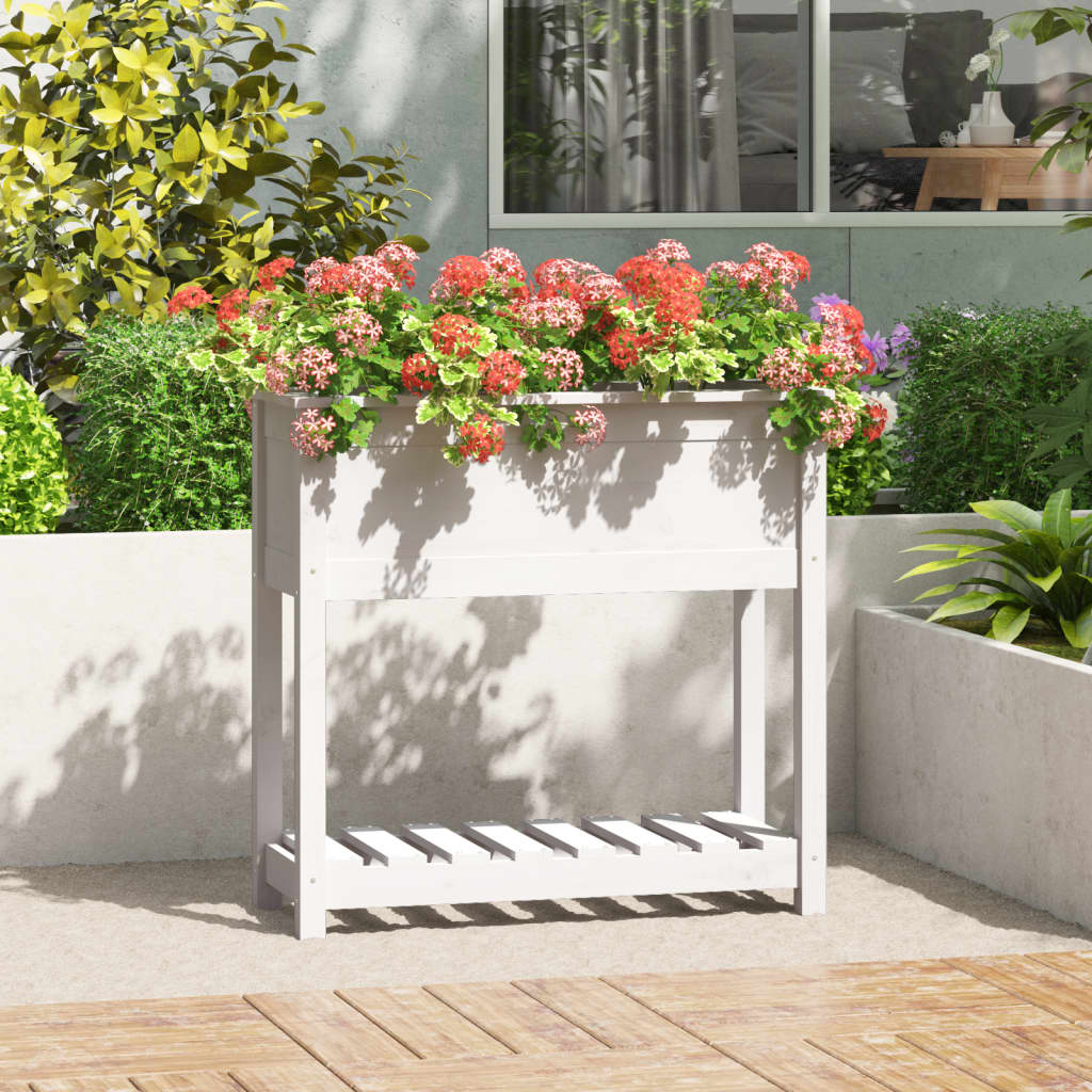 Pflanzkübel mit Ablage Weiß 82,5x34,5x81 cm Massivholz Kiefer