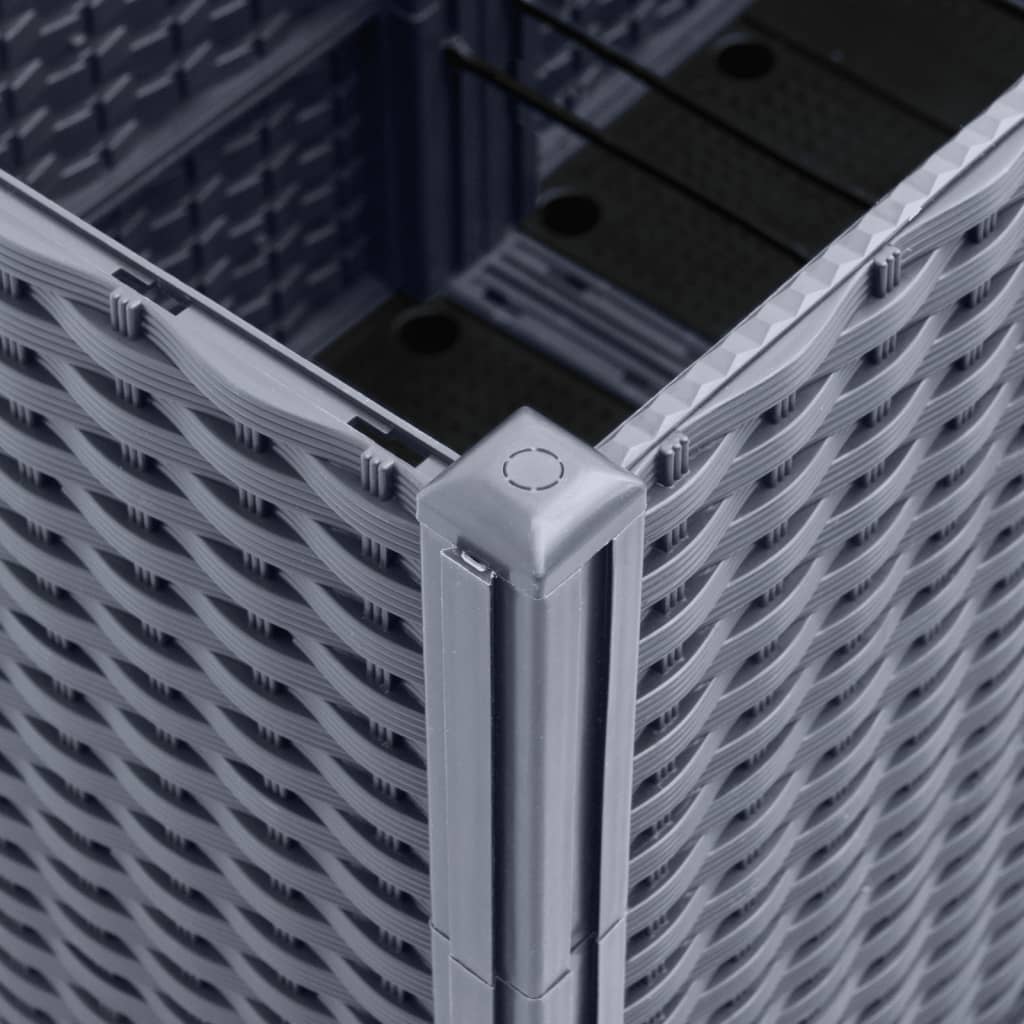 Dieser Blumenkübel mit Spalier ist eine ausgezeichnete Wahl für Kletterpflanzen in Ihrem Garten oder auf der Terrasse. Langlebiges Material: Polypropylen ist ein beliebter Kunststoff, der bei der Herstellung von Gartenmöbeln häufig verwendet wird. Er ist leicht, robust und stoßfest.Großzügiges Fassungsvermögen: Der Pflanzkübel bietet viel Platz für den Anbau von Gemüse, Blumen und anderen Pflanzen.Praktisches Design: Die ideale Bodenschicht bewahrt die Feuchtigkeit und ermöglicht eine leichte Drainage. Zudem bietet das integrierte Spalier eine großartige Rankhilfe für Kletterpflanzen wie Tomaten, Erbsen und Rosen.Modulares Design: Dieses Pflanzgefäß besteht aus 6 Blumenkästen, die sich je nach Bedarf frei miteinander kombinieren lassen.Ansprechende Rattan-Optik: Mit seiner ansprechenden Rattan-Optik verleiht der Pflanzkübel deinem Außenbereich eine elegante Note.
