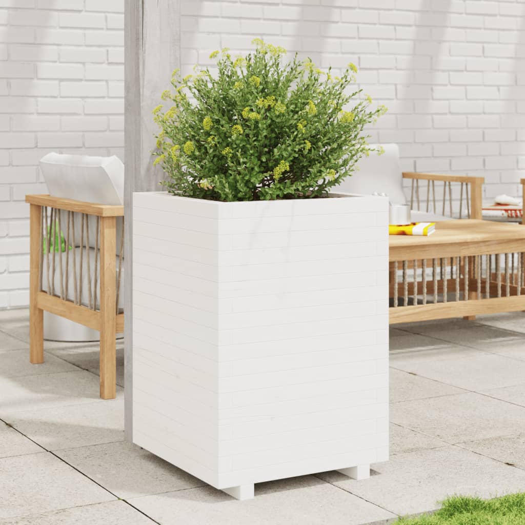 Pflanzkübel Weiß 50x50x72,5 cm Massivholz Kiefer